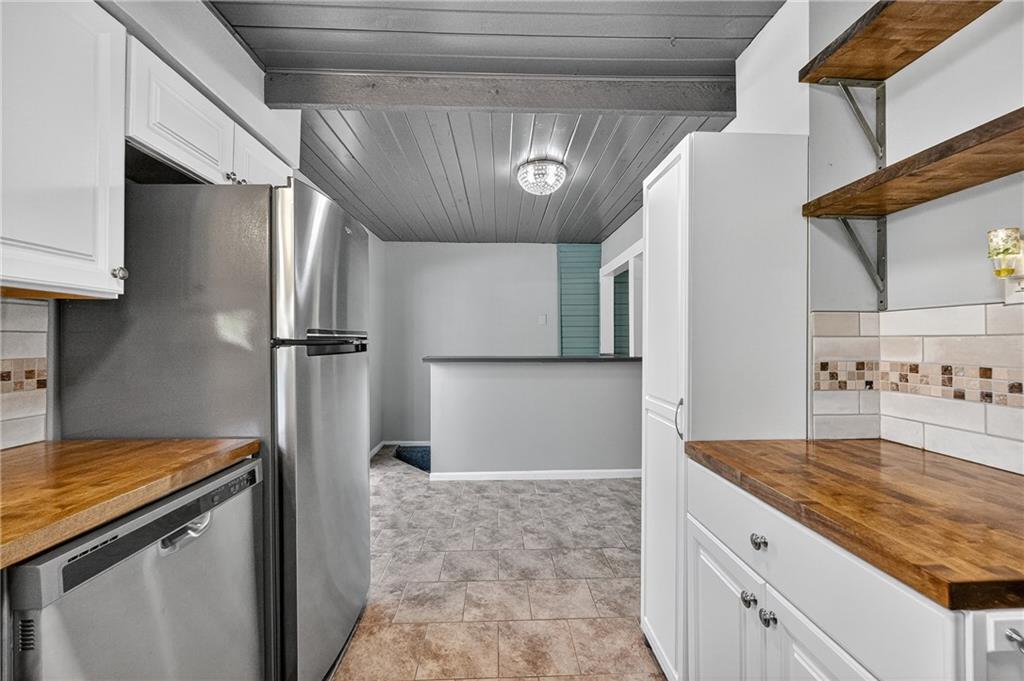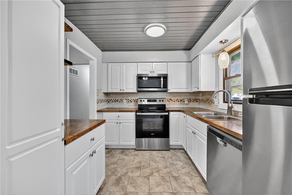 Welcome to this charming raised ranch offering a perfect blend of comfort, style, and privacy. Step inside to find a bright, inviting main level featuring a beautifully updated kitchen with warm butcher block countertops, sleek stainless steel appliances, and an adjoining dining area that opens to a spacious deck with built-in bench seating — ideal for entertaining or relaxing outdoors. This home includes three bedrooms and one and a half baths, providing plenty of space for everyday living. The finished walkout basement offers additional living space perfect for a family room, home office, or gym. Enjoy the convenience of a two-car garage tucked behind the home for added privacy and security. The fully fenced backyard backs to open space with no neighbors behind, creating a peaceful retreat right in the city. With a move-in-ready interior, stylish finishes, and a layout designed for both function and comfort, this home checks every box. All appliances, including the washer and dryer, stay with the property — making it truly turnkey.