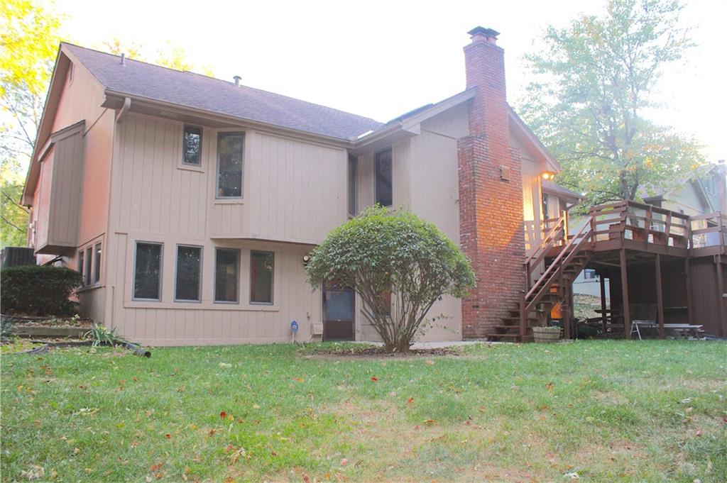 AUCTION HOME! THIS HOME WILL BE AUCTIONED AT 12:30 P.M. ON NOVEMBER 14TH BY LEGACY AUCTION. SOLD@AUCTIONSKC.COM OPEN HOUSES ON NOVEMBER 8TH & 9TH FROM 11 A.M - 1 P.M. AND ON NOVEMBER 13TH FROM 5 P.M.- 7 P.M. CONTACT BRADLEY FOR SHOWINGS AT 816-820-3313. THE PRICE IS THE RESERVE AMOUNT. Discover the potential in this well-maintained, custom-built home on a .43-acre wooded lot. The stone veneer front and covered porch open to a two-story entry with vaulted ceilings and skylight. The large living room features box-beam ceilings, stone fireplace, oak built-ins, and skylight. Enjoy flexible spaces including a formal dining room (perfect for an office) and a spacious eat-in kitchen with custom oak cabinetry, newer stainless dishwasher, and breakfast area leading to a large deck overlooking the private backyard. A half bath and double garage complete the main level. Two main-floor bedrooms share a full bath, with convenient laundry and ample storage. The primary suite offers a vaulted ceiling, walk-in closet, and full bath with separate powder area and stand-up shower—ready for easy updates. The walk-out basement includes a large family room with brick fireplace and built-ins, a second suite with full bath, storm shelter, and abundant storage. Unique features include a cedar-lined jacuzzi spa room with built-in stereo and large windows. Enjoy the private backyard with mature trees, patio, deck, and shed with electric. Updates include a newer Trane high-efficiency HVAC, updated electrical, and transferable ADT security system. Quiet, established neighborhood within Oak Park High School boundaries—no earnings tax and easy highway access. A truly unique home ready for your personal touch!