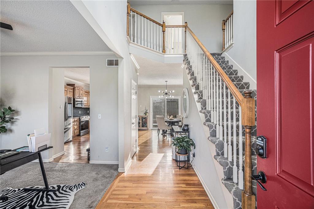This stunning 4-bed, 2.5-bath home blends comfort and style with thoughtful updates inside and out. The main level features a bright, open kitchen with a brand-new granite island, sink, marble backsplash, and disposal (July 2025), along with new appliances (Sept 2021) and a walk-in pantry. Enjoy fresh lighting, ceiling fans, and recently replaced toilets, plus a smart thermostat and efficient HVAC and water heater (2021). Relax in the spacious primary suite, complete with a jacuzzi tub and dual walk-in closets. The finished basement offers extra living space—perfect for a rec room, home gym, or play area. Step outside to the new patio (July 2025) overlooking newly landscaped grounds, with automatic exterior lighting that makes evenings magical. The epoxied garage floor and extended garage provide style and functionality, while the new storm door and fresh exterior paint (June/July 2025) add curb appeal. Located near fantastic schools and amenities, this move-in-ready home truly has it all!