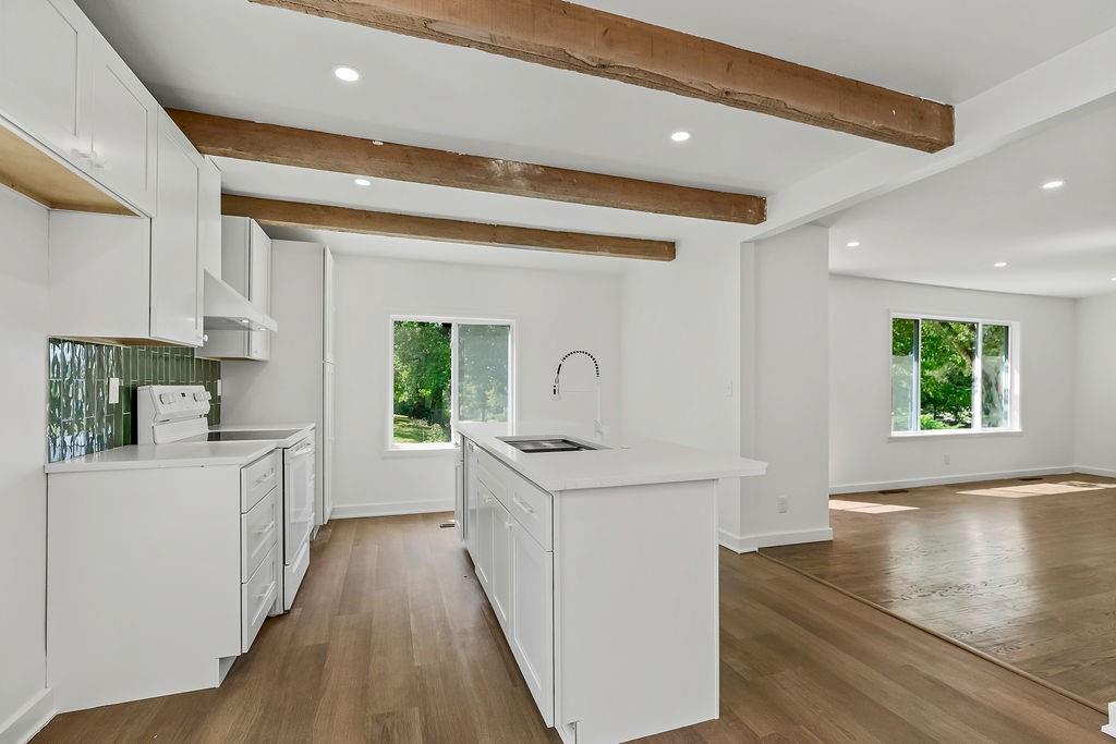 Beautifully renovated from top to bottom! This full rehab offers a custom-designed kitchen with modern finishes, complemented by refinished hardwood floors and LVP flooring in the kitchen and both baths. The primary suite features a walk-in closet and spa-inspired bath with a walk-in shower and double sink vanity. Fresh interior and exterior paint, new windows, and a newly installed paver patio and front porch enhance both comfort and curb appeal. Additional updates include HVAC service, duct cleaning, and complete pest treatment. Enjoy the large, flat backyard with mature trees and no rear neighbors—a cul-de-sac sits just beyond the back fence for added privacy. New landscaping completes this move-in-ready home!