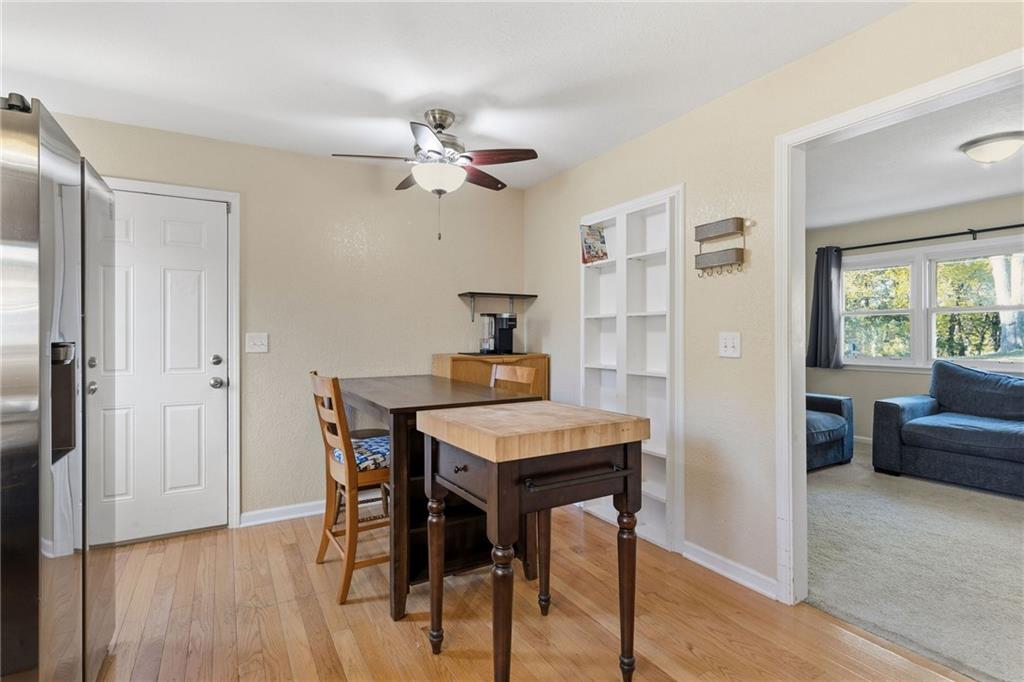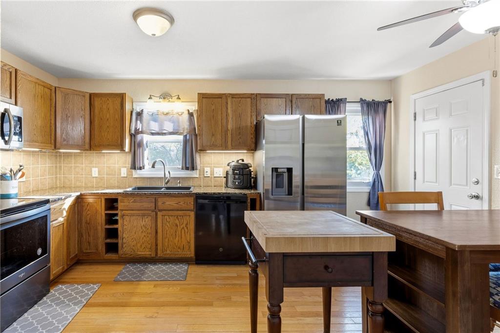 True ranch located on a private street with a large yard that backs to a beautiful treed greenspace. Featuring four bedrooms and two full bathrooms, this home has been newly remodeled so all you need to do is move right in. You’re right—it doesn’t get any better than this. Inside, you’ll love the real hardwood floors, stainless steel appliances, and built-in storage in the kitchen. The main floor offers three bedrooms, including a primary suite with direct access to the updated bathroom featuring tile flooring and a tiled shower surround. The finished lower level provides a fourth bedroom and full bathroom, perfect for separate living quarters, with walk-out access to a large patio and fenced backyard just under half an acre. There’s plenty of room to expand or add a garage or storage shed, plus an additional concrete parking pad for convenience. The home has been thoughtfully maintained with annual HVAC servicing and pest maintenance, and includes smart-home features such as a Ring camera, keyless front door entry, and a smart thermostat. Great highway access makes it easy to get anywhere in the Kansas City metro area.