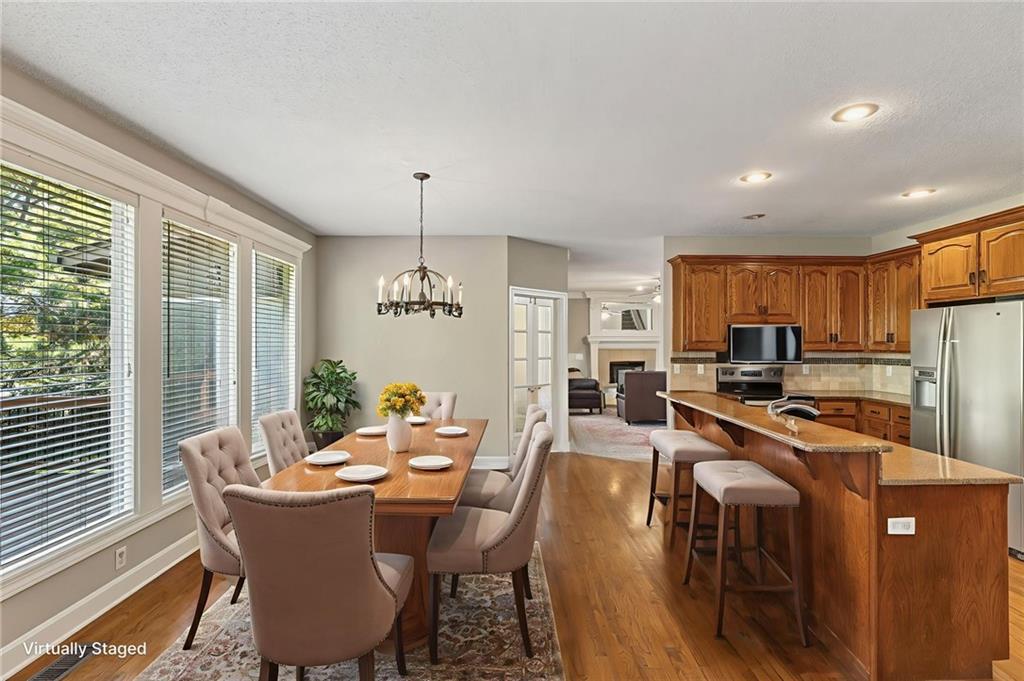 Welcome to a beautifully updated, luxury 4 (5) bedroom, 4.1 bath home tucked in a quiet cul-de-sac on nearly a half-acre lot! Step inside this light-filled residence showcasing elegant architectural details including a grand two-story entry with catwalk, formal dining room with custom wainscoting & bay window, & a spacious home office or bonus room. The expansive living room, anchored by a refined fireplace, flows effortlessly into the enormous sunroom—a stunning space ideal for large gatherings, a tranquil greenhouse, or year-round entertaining. The kitchen and hearth room serve as the heart of the home, featuring a granite island, generous pantry, & brand-new range & microwave—all appliances included. Enjoy the warmth of the second fireplace in the hearth area and a sunlit breakfast nook. Upstairs, the primary suite is a true retreat, complete with a sitting area, spa-inspired bath with jetted tub, abundant cabinetry, and one of the largest walk-in closets you’ll find. A private guest suite features its own full bath and walk-in closet, while two additional bedrooms share a convenient Jack-and-Jill layout with separate vanities. The finished lower level offers impressive versatility & space, including a recreation area with wet bar & theater setup, a game or bonus room ideal for entertainment or a private library, and a non-conforming 5th bedroom with full bath—perfect as a guest suite, fitness room, or additional office. Outdoors, enjoy a resort-style backyard designed for both relaxation and entertainment with a beautiful paver patio and private fenced yard surrounded by mature landscaping. The large basketball hoop, grilling area off the garage, and extra storage beneath the sunroom add both function and practicality. Zoned HVAC with 2 units! This home truly embodies luxury living with everyday comfort—offering space, style, and an unbeatable Overland Park location.