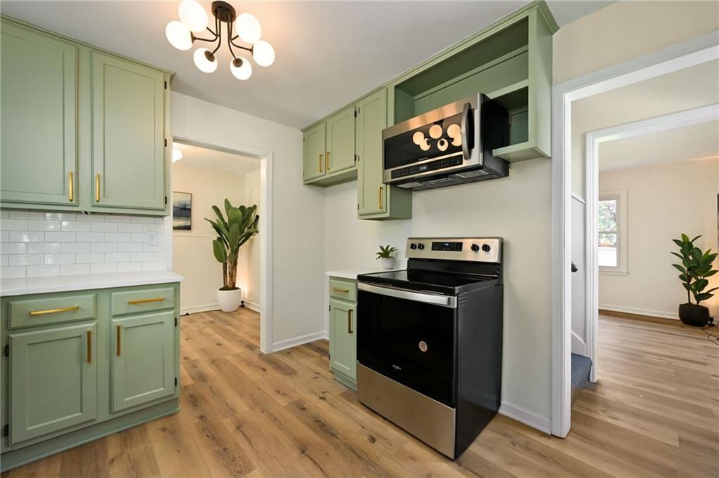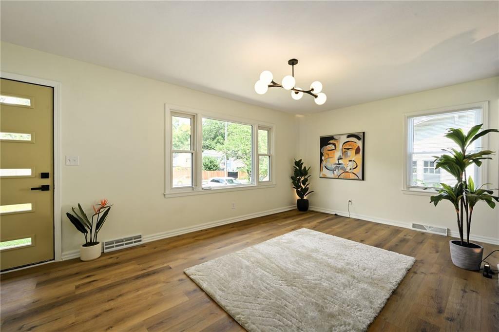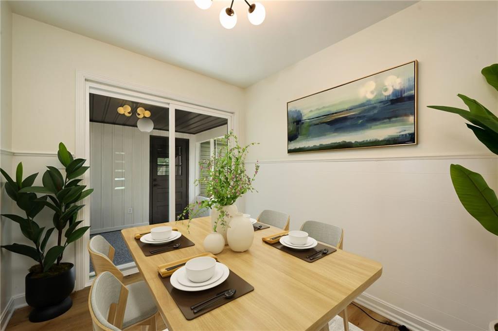 Don’t miss out on this fully updated four-bedroom, two-bathroom home featuring gorgeous modernized curb appeal in a fantastic location! Step inside to a freshly updated interior with all-new LVP flooring and carpet throughout, complemented by bold accent walls and designer interior paint that bring personality and warmth to every space. The eclectic light fixtures tie the entire look together with modern flair. The updated kitchen shines with stainless steel appliances, quartz countertops, stylish hardware, and a beautifully tiled backsplash. A formal dining area flows seamlessly into the enclosed breezeway, perfect for relaxing or entertaining. The main level offers two bedrooms and a full bathroom designed with eclectic flooring, a tiled shower and bath combo, gold fixtures, and a chic vanity that elevates the space. Upstairs, you’ll find two additional bedrooms—each with enlarged walk-in closets—and a fully updated bathroom mirroring the elegant design of the main level. Thoughtful built-ins provide ample linen and towel storage, plus there’s unfinished attic space for even more storage potential. A fully unfinished basement offers versatility for a workshop, gym, or additional storage. The attached one-car garage adds convenience. Recent updates include: New roof (2024), Updated vinyl windows, Modern finishes throughout. This move-in ready home is a true must-see—offering style, comfort, and quality updates from top to bottom!