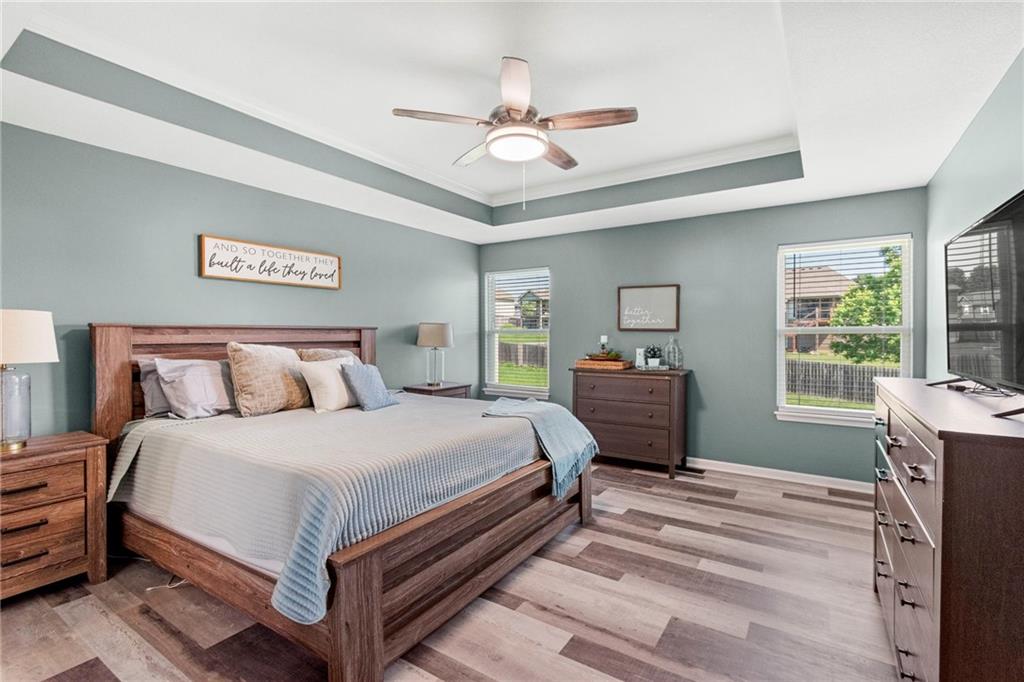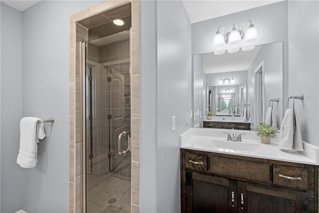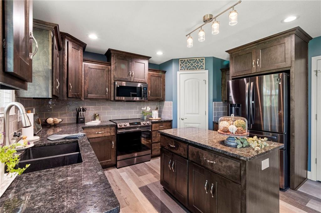 Prime better than new Kearney 3 bed, 3 bath, home that has been thoughtfully designed and exceptionally well maintained. All main level flooring is a high end LVP flooring. Kitchen is the entertainers dream! It has updated cabinets, granite counters, and a large center island perfect for gathering and meal prep. Kitchen features two pantries including a large walk in. Spacious primary suite has dual vanity, spa like shower with two shower heads, and a huge walk in closet. Finished basement has another large living area and full bath. Utility room is used for extra storage space. Garage is extra deep for additional storage. Outside you will see a great outdoor living area with a staircase down to the yard. Yard has plenty of room for pets to play and features a newer 6-foot privacy fence. Don't miss this opportunity to own your home with luxury amenities at an affordable price.