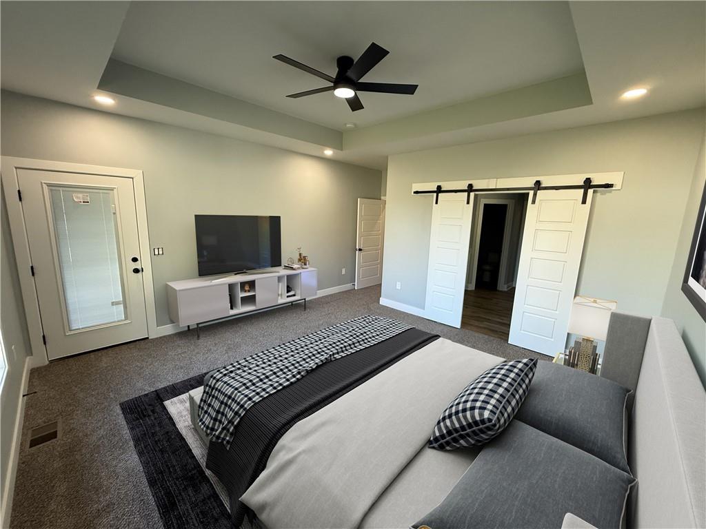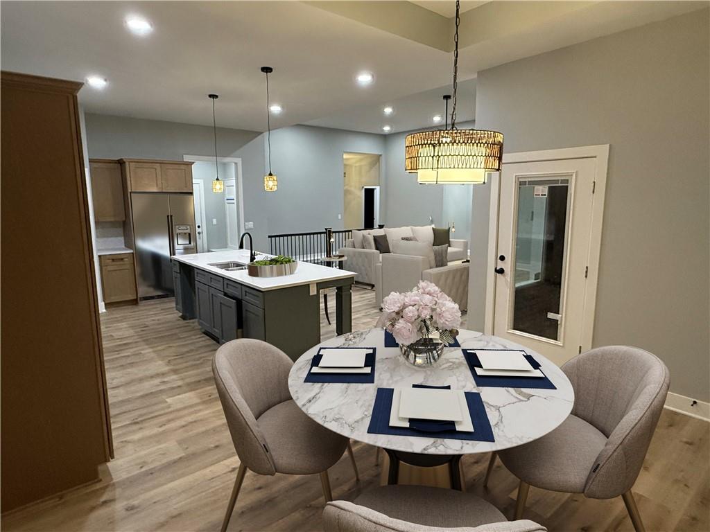 PRICED TO SELL- Instant Equity! $20,000 instant equity for buyer! Beautiful Reverse 1.5-Story Home – 4 Beds | 3.5 Baths | 3-Car Garage This perfectly sized reverse 1.5-story home offers ideal main-level living with 4 bedrooms, 3.5 bathrooms, and a spacious 3-car garage! The main level features two bedrooms, including a stunning master suite, and a cook’s dream kitchen with a gas range, walk-in pantry, and ample workspace. Enjoy the impressive Great Room with soaring 12-foot ceilings and direct access to the back patio—perfect for entertaining. The luxurious master suite includes a spa-like private bathroom with double vanities, a large shower, a freestanding tub, and a large walk-in closet and bedroom has door entry for direct access to the back patio. The finished lower level offers a large Rec Room with a built-in bar, two additional bedrooms with a Jack-and-Jill bathroom, a half bath, and plenty of storage space—including a storm shelter in the HVAC room. There is also a non conforming bedroom in which can be used a exercise or craft room room. You'll love the outdoor living with a generous back patio, ideal for BBQs, gatherings, or quiet evenings at home. Home is currently under construction and in the finishing stage—move-in ready for a quick close! Seller is owner/agent licensed in KS. Floor plans available upon request.