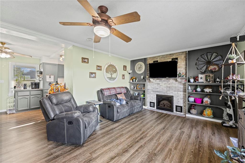 Perfect Starter Home in Osawatomie! This charming 2-bedroom ranch is ideal for first-time buyers looking for comfort and value. Stylish newer vinyl plank flooring flows throughout the main living spaces, and the unfinished basement offers plenty of room for storage or future expansion. The former attached 1-car garage has been partially converted, offering flexible space for a workshop, hobby area, or additional storage. A backyard storage shed adds convenience, and the large yard is perfect for pets, gardening, or entertaining. With brand-new siding and fresh exterior paint, this home is move-in ready inside and out. Affordable and inviting, don’t miss your chance to make it yours!