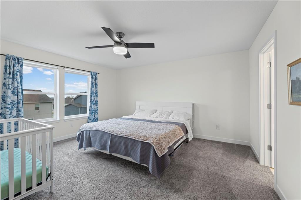 Better than new, custom-built home in 2025. No waiting for construction. Skip the hassle and move right in. Owners have added a 4-foot privacy fence, new garage doors, openers, and window coverings. This popular floor plan offers a main floor bedroom that is a great location for a home office, 4 bedrooms on the upper level and one bedroom and full bath on basement level. The roomy recreation room walks out to a fully fenced backyard and patio. Nice deck for entertaining. Transferable 2-10 Home Buyers Warranty.