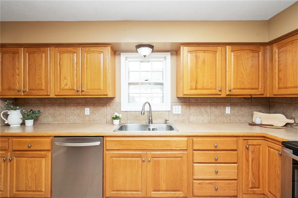 3 Bedrooms | 2 Bathrooms | 2-Car Garage | Fenced Yard | Move-In Ready Tucked away on a cul-de-sac in a convenient west-Lawrence location, this charming split-level home offers comfort, space, and value. Step inside to beautiful hardwood floors flowing through the bright living and dining area. The spacious kitchen features updated stainless-steel appliances, solid wood cabinetry, tile flooring, and plenty of counter space for meal prep or entertaining. Upstairs, you’ll find three comfortable bedrooms and a refreshed full bath with modern tile surround. The lower-level family room with a cozy brick fireplace and exposed beams creates a perfect second living space, playroom, or home office. Enjoy outdoor living in the large fenced backyard complete with a patio, mature shade trees, and a new storage shed—ideal for gardening tools or hobbies.