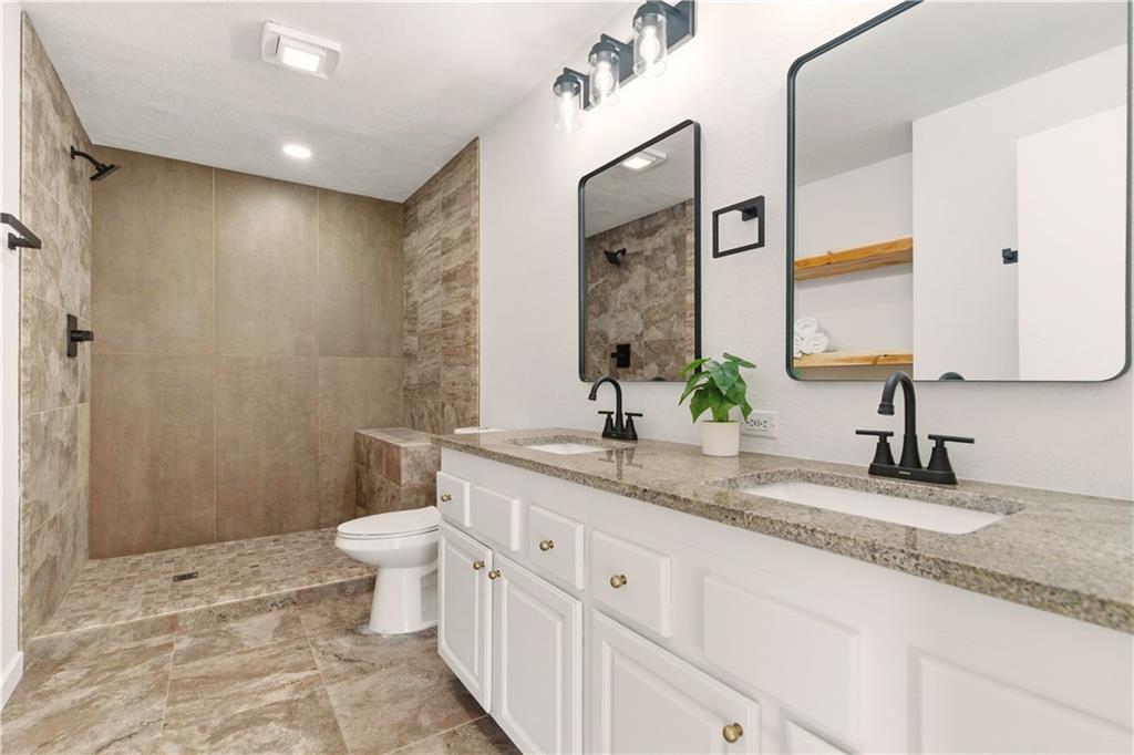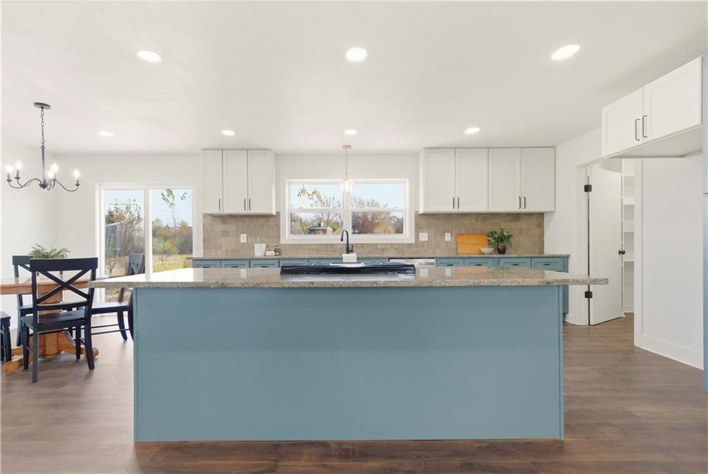 Enjoy your own private hideaway in Tonganoxie. This fully updated ranch style home has 5 bedrooms and 3 full baths, sitting on just under 12 acres offering peaceful country living. Inside the living room connects to the updated kitchen with a large island, gas stove top, updated granite countertops, and full pantry/laundry room off the side. The primary suite has a new walk-in closet and great walk in shower in the bathroom with double vanities! Downstairs the finished basement provides even more living space perfect for entertaining complete with a full bath and a fifth bedroom. Recent updates throughout the home include new windows, fresh interior and exterior paint, new carpet, updated plumbing, new lighting and electrical, new driveway, and new HVAC. Beautiful open acreage, mature trees, and space to enjoy gardening, livestock or outdoor projects. The barn and two chicken coops make this property ideal for those dreaming of a country living, or simply extra storage and workspace. Move in ready and just off the blacktop road - come check out this home today!