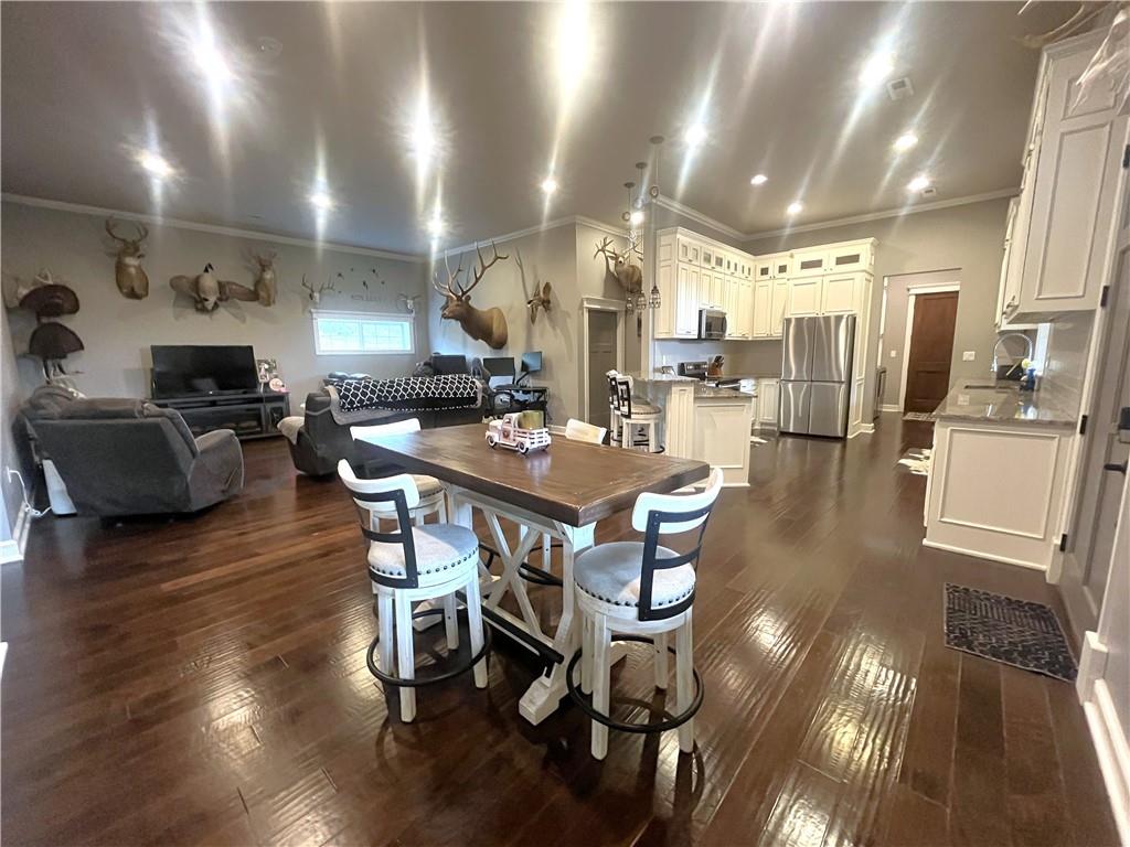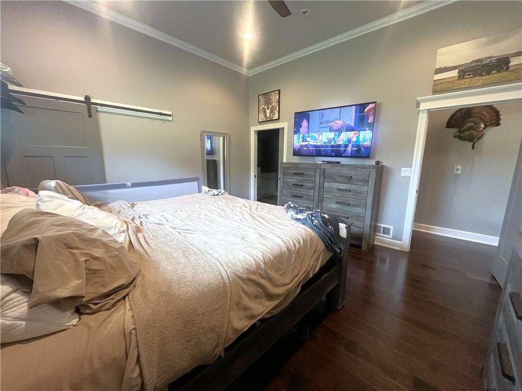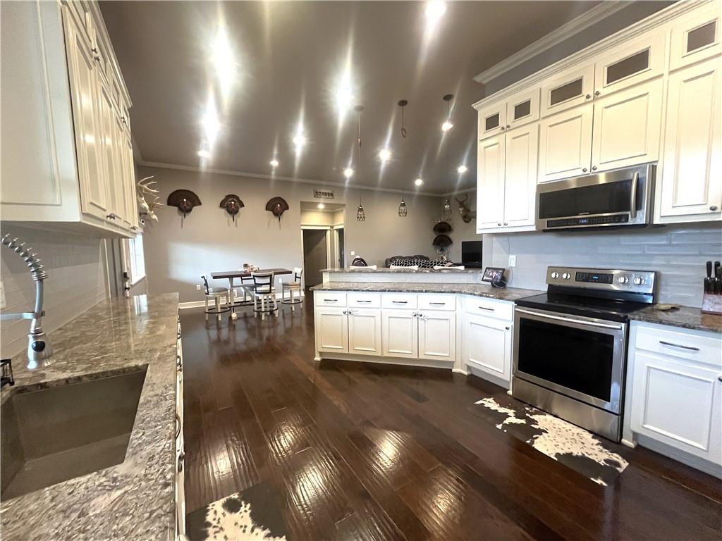 This beautifully crafted 2,200 sq ft ranch-style home, built in 2017, offers the perfect blend of privacy, convenience, and timeless design. Nestled just off the highway in a secluded setting, this 4-bedroom, 2.5-bath residence features an open-concept layout ideal for both relaxed living and effortless entertaining. Step inside and be greeted by custom woodwork, rich hardwood floors, and granite countertops that elevate every space. The 36” wide doorways provide a spacious, accessible flow throughout, while the striking 8’ tall front door makes a bold and elegant first impression. Outside, the property unfolds across 12.58 acres complete with timber trails, a stocked pond, and a versatile patio perfect for gatherings. The attached three-car garage adds convenience and storage.