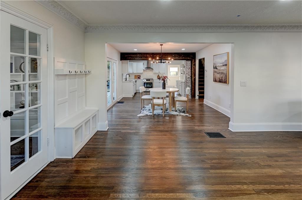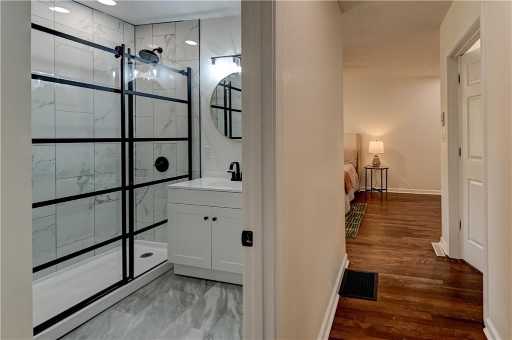 Fully remodeled 1930s charmer blending timeless character with modern luxury, listed $25,000 under recent appraisal! Step through the front door and feel the character of the 1930s brought back to life with thoughtful updates throughout. Nearly every inch of this home was taken down to the studs, with the exception of the front living room intentionally preserved to maintain the original 1930s plasterwork and fireplace design. That space flows seamlessly into the restored front office with refinished original doors, opening to an expansive, bright dining, living, and kitchen area perfect for entertaining. Major system upgrades include completely new electrical (no knob & tube), all new plumbing including main stack. Newer roof, siding, and windows (all approx. 2 years), plus restored hardwood floors, new front patio, new oversized deck, and all-new kitchen, bathrooms, appliances, fixtures, sheetrock, insulation, and paint. The brand-new primary suite offers generous space and comfort while honoring the home’s vintage charm, and every finish was selected with care. The fully finished lower level provides flexible living as a guest suite, in-law setup, or Airbnb income opportunity, featuring its own private entrances for convenience and privacy. Outside, enjoy the massive new deck and extra-large lot that provide rare space and breathing room for Roeland Park. This home is a hidden gem—classic character on the outside, all-new modern living on the inside—move-in ready, beautifully designed, and built to last and only a couple minutes from the plaza. (Garage door opener being installed soon)