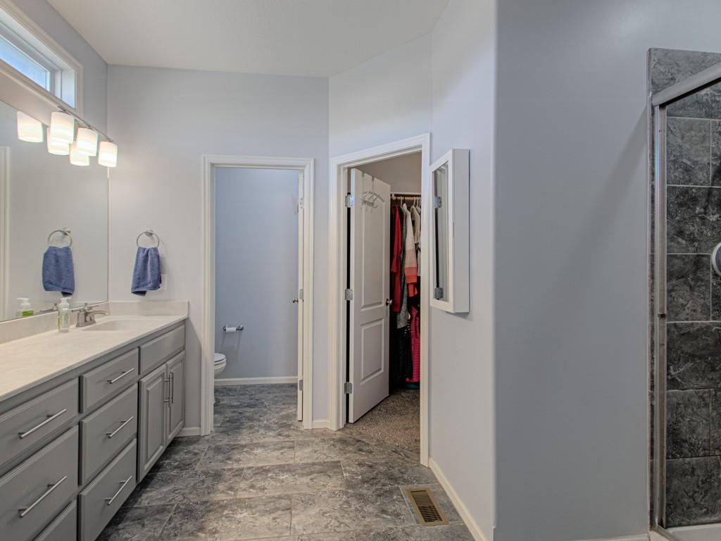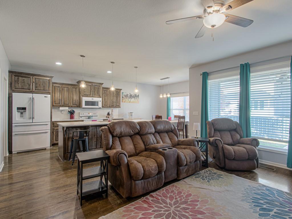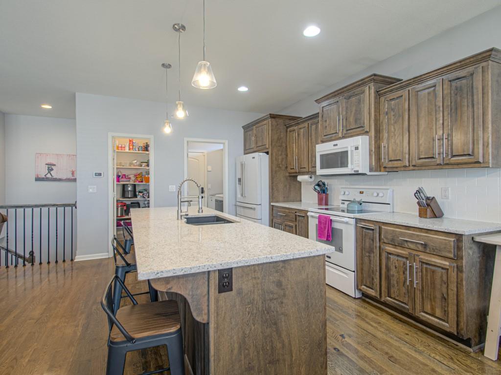 WONDERFUL OPEN Reverse with 4bedrooms, 3 full bathrooms, open great room, spacious kitchen island, informal dining, and newly finished basement! Enjoy the main level master suite with roomy walk in closet and large double vanity en suite. The main floor also has a second bedroom, additional full bathroom, main floor laundry, and walk in pantry! The Lower level boosts an Extra living room, 2 huge bedrooms, a 3rd full bathroom, walk in closets, and great storage! Appreciate coffee mornings and beautiful sunsets on the extended back patio which gives you plenty of space for grilling and entertaining. In addition there is tons of level side yard both direction with fenced privacy for gardens, play sets, and lots of fun. You will love the large driveway, irrigation system, and hard to find 3 car garage in this price range! Eight years young and MOVE IN READY!