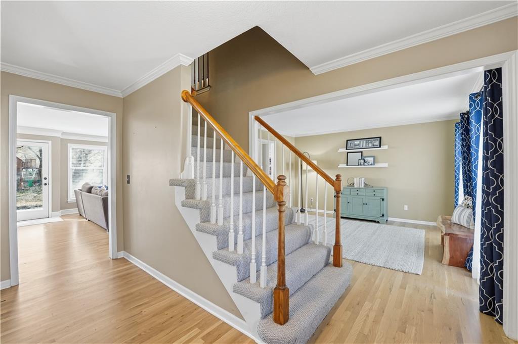 Beautiful 2-Story home in the highly sought-after Brookwood Place! Open and functional floor plan with pristine hardwoods throughout the main level. Main floor features formal living and dining rooms, a cozy great room with fireplace and built-ins, plus updated kitchen and breakfast nook that overlooks the expansive backyard. Recently finished basement includes large rec room, 5th bedroom, 3rd full bath, and built-in office nook. Additional updates include designer stair and second-floor carpet, new water heater, fence, and sprinkler system. Situated on a huge over-half-acre lot, this home provides room to relax, play, and entertain outdoors. The location can’t be beat- just minutes from highway, Lenexa City Center, shopping, and dining. The buyer will enjoy the added value and peace of mind of a brand-new roof and skylight, to be installed prior to closing. Don’t miss this exceptional Brookwood Place home.