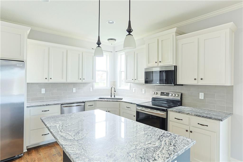 Nestled on a quiet cul-de-sac, this thoughtfully designed home offers the ideal blend of style, functionality and location. The open floorplan welcomes you with soaring ceilings, abundant natural light and a warm, modern aesthetic. The heart of the home features a beautiful kitchen seamlessly flowing into the dining and living spaces,perfect for both everyday living and entertaining. A spacious primary suite complete with dual vanities, walk-in shower and a generous walk-in closet! Downstairs you’ll find a versatile space—idealrecreation area with 3 TV hookups! Outside, the fully fenced backyard offers a serene setting for summer evenings, with ample room for BBQs, play or simply relaxing. This home was crafted with quality in mind, premium finishes and smart-home touches, and energy-efficient features and even a dedicated 240V garage EV charging outlet. With low-maintenance landscaping, a three-car garage, and a highly rated Blue Springs School District, the location truly has it all. Just minutes from shopping, dining and major road access, you’ll enjoy both convenience and tranquility. Check it out, NOW! Update- Blue accent wall has been painted grey since photos. Seller has added it to the photo collection along with some of the jellyfish lighting experience frm last season.