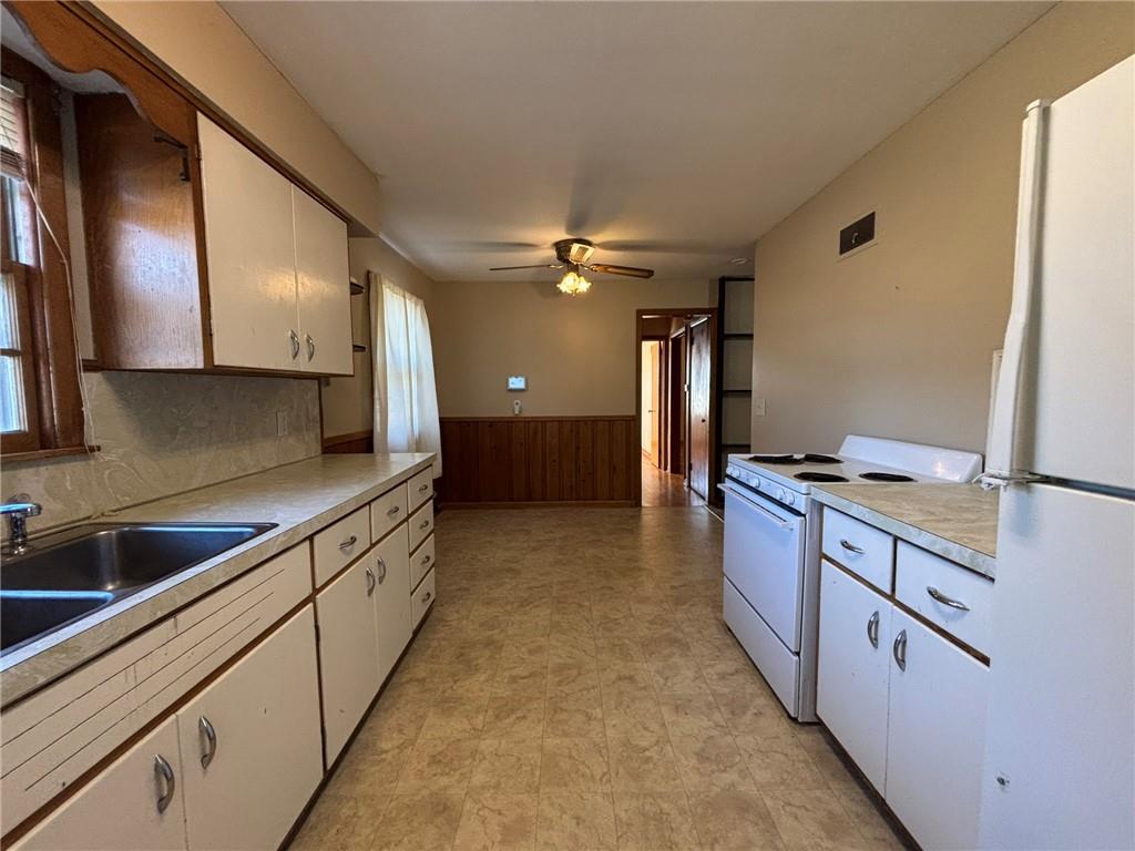 Located just east of the Belt Highway on a deep ¼-acre lot perfect for outdoor activities, this cute 2-bedroom raised ranch offers comfort and convenience. The home features easy-care vinyl siding and soffits, plus a roof installed in 2019. Inside, you’ll find an inviting living room with a coat closet, and an eat-in kitchen with wood cabinets and included appliances. Hardwood floors are in both bedrooms and likely under the living room carpet. The full basement includes a laundry area, a garage, and extra space ready to finish into a family room or recreation area.