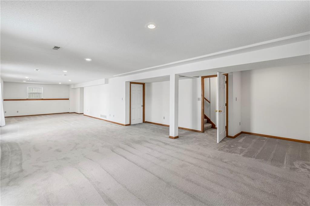 You do not want to miss this adorable true ranch home, offering three bedrooms and three bathrooms, nestled in a quiet cul de sac in Woodbury Park…and just a short distance from Lees Summit North High School! This home has been lovingly lived in and it shows. Natural light pours in through every room, the vaulted ceilings and cozy fireplace create such an inviting feel, and the clean neutral palette makes it so easy to make the space your own. The kitchen is spacious and functional with plenty of cabinet storage, and the bump out window above the sink is such a lovely feature for plants or decor. Even better, accessing the kitchen directly from the garage makes the task of unloading groceries an absolute breeze. The bedroom layout is thoughtful and comfortable, with a hall bathroom serving the two secondary bedrooms and the primary suite offering its own private ensuite. The walkout basement adds even more usable space with a full third bathroom and room for a home office, recreation, entertaining, or all of the above! Outdoors, you will love the established and thoughtfully placed landscaping. Enjoy the view of it all from the deck, which was replaced in 2019 and refreshed in August 2024…with a full power wash, restain, and seal! Major updates include: A/C replaced in August 2024, furnace replaced in January 2022, new microwave installed in October 2025, and substantial driveway repair in November 2025. Beautifully maintained and move in ready, this home truly delivers comfort, updates that matter, and a fantastic location!