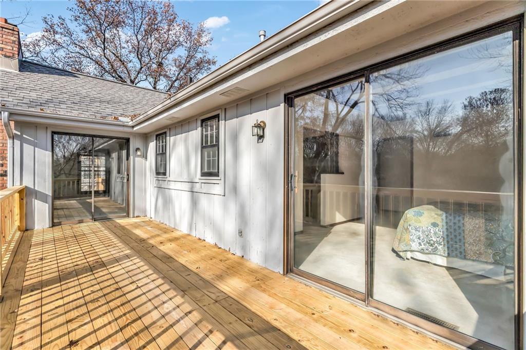 Welcome Home to this well maintained ONE-OWNER HOME, nestled on a generous .41-acre lot that backs to peaceful treed green space. This residence offers privacy and room to breathe. Step inside to a soaring vaulted Living room centered around a classic brick wood-burning fireplace flanked by custom built-ins and bookcases. Sliding doors open to the first of two brand-new decks — ideal for friends and family gatherings with nature as your backdrop. Adjacent is a sunny formal Dining room with direct access to the second new deck a perfect spot for morning coffee. The open flow continues into a bright eat-in Kitchen boasting stainless steel appliances, abundant cabinetry and counter space. The primary suite featuring striking exposed wood beam ceiling detail, walk-in closet and en-suite. Two additional bedrooms, a full bath and convenient main-floor laundry complete the upper level. The walk-out Lower-level Family room impresses with a second fireplace and is made for movie and game nights. Built-ins with book shelves flank the fireplace with access to the new concrete patio overlooking the large backyard. A generous sized Garage- 25’x31’ giving room for work space, toys and tools! **Pride of ownership shines with recent updates to include- new HVAC, sidewalk, fresh exterior paint in 2020. Total Roof replacement in 2019 and more *recently two new Decks, new concrete Patio, and fresh interior paint throughout in 2025! *Located in a highly desirable Liberty neighborhood just minutes from top-rated Liberty schools, historic downtown Liberty Square and everyday shopping. If you’ve been searching for a move-in-ready ranch in Liberty MO with privacy, treed lot, finished basement, main-floor laundry, wood-burning fireplace and big garage – this is it!