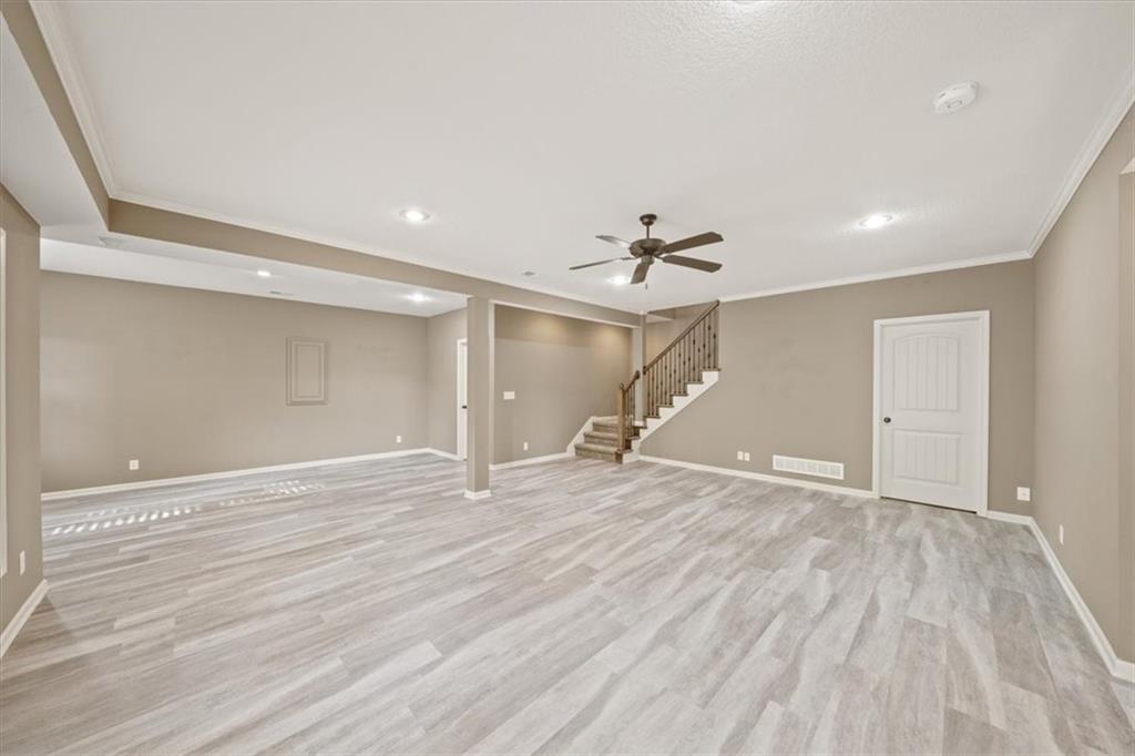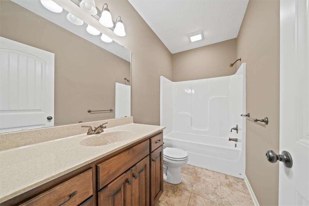 Welcome home to 105 N Eastglen! Reverse 1.5 Story located in a quiet cul-de-sac of the coveted Eagle Glen Subdivision. Open concept on main level with lofty ceilings and lots of natural light. Kitchen features large island, walk-in pantry, and stainless steel appliances. Main level primary with private full bathroom and walk-in closet. Walk-out basement with large rec area, two bedrooms, and full bathroom. AMAZING covered deck for entertaining. Spacious three car garage with large driveway. Close to highways and shopping. Raymore school district.