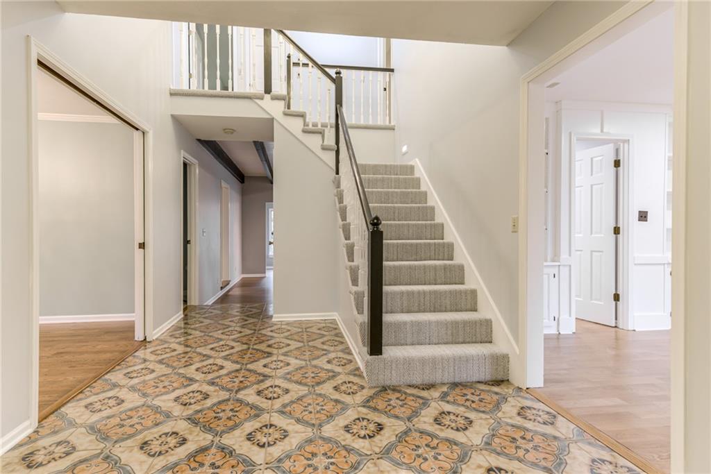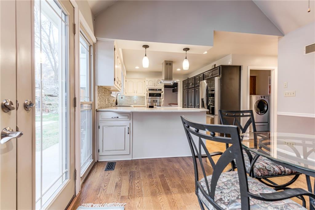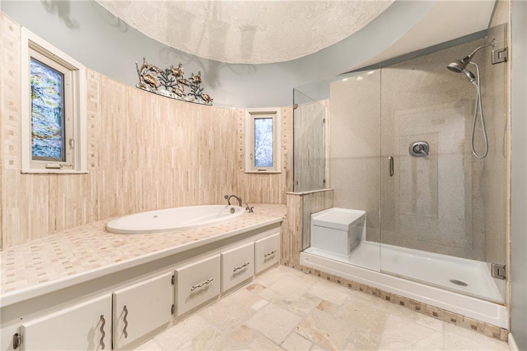 One-of-a-Kind 2-Story with Turret & Backyard Oasis! Fall in love with this unique and beautifully updated 4-bedroom, 3.1-bath home full of charm and character! The striking turret sets the tone for this distinctive property, while the backyard delivers a true private retreat—beautifully landscaped and featuring a large koi pond with waterfall, relaxing hot tub, covered Gazebo and lush surroundings. Inside, you’ll find thoughtful updates throughout. Newer HVAC, New Roof, The kitchen shines with painted cabinets, added pantry, newer quartz countertops, new appliances, newer wood floors and an induction cooktop with vent hood. The entryway has new stair carpet on the stairs and hallway. The expanded primary suite includes a sunny window seat, walk-in closet and additional cedar closet, an updated spa-like bath with therapy tub, solid-surface shower, and a private sauna for ultimate relaxation. Entertain in style in the large living room with sunroom and wet bar, or head downstairs to the mostly finished lower level featuring a second wet bar, wine cellar, full bath, and tile flooring—ideal for gatherings or a private guest retreat.