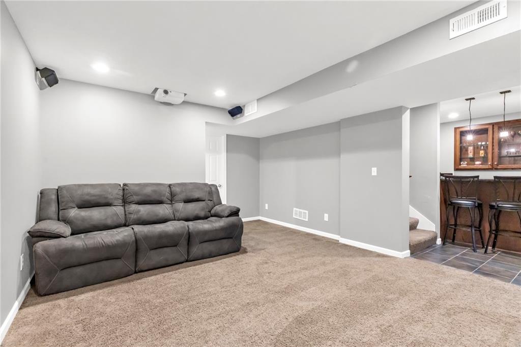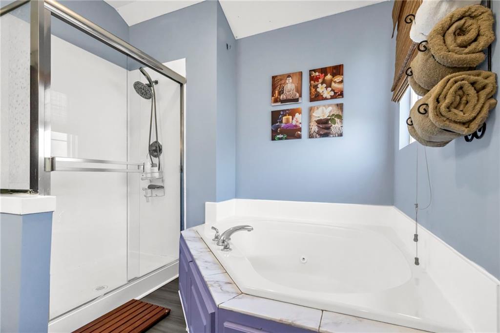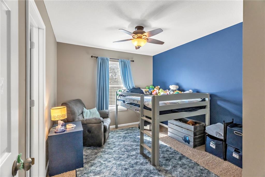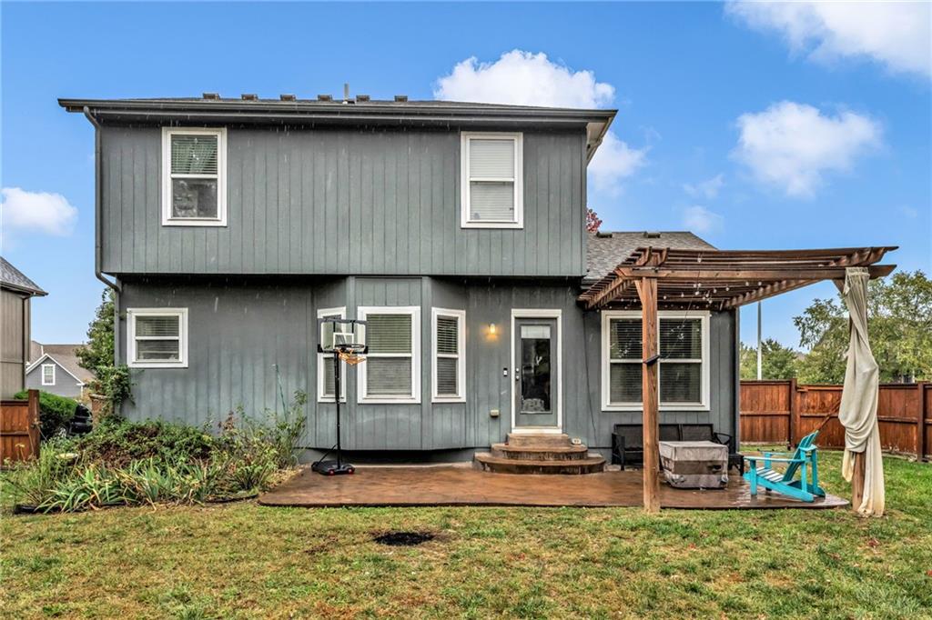 This inviting 4-bedroom, 3.5-bath home is perfectly positioned on a spacious corner lot at the end of a peaceful cul-de-sac. From the moment you step onto the large, welcoming front porch, you’ll feel right at home. Inside, the open-concept great room and kitchen offer the ideal layout for both everyday living and entertaining. Upstairs, you’ll find the expansive primary suite featuring a private sitting area, a grand walk-in closet, and a luxurious bath complete with a jetted tub and separate shower. Two additional bedrooms share a stylish Jack and Jill bath, and the convenient upstairs laundry closet makes everyday living even easier. The finished lower level provides additional living space with a bedroom, full bath with heated tile floors, a bar area with heated tile, and a large recreation room—perfect for game nights or movie marathons. Step outside to enjoy the fenced backyard complete with a storage shed, rubber-mulched play area with a clubhouse, and a beautiful stamped concrete patio with pergola—ideal for relaxing or entertaining outdoors. Additional highlights include a 2-car garage, lawn irrigation system, water softener, and a radon mitigation system already in place. Walking trails just behind the home lead to two parks and the neighborhood pool. Conveniently located near highly rated schools, shopping, dining, and parks, this home truly has it all! OPEN HOUSE SATURDAY 11-1 and SUNDAY 1-3