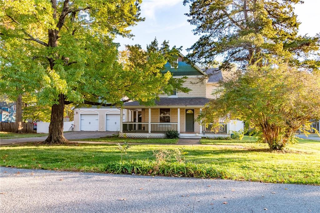 Step back in time with this exquisite 1910 two-story home, beautifully renovated top to bottom in 2004. The expansive wraparound porch on three sides invites you to relax and enjoy the charming surroundings. Inside you’ll find three bedrooms and 1.5 baths, updated kitchen, extra large mudroom area and an unfinished basement for extra storage and safety. The two car attached garage still feels almost new and the backyard deck (2010) overlooks the fenced backyard—perfect for entertaining or simply unwinding. Utilize the storage shed in the backyard to keep garage space open. Nestled on a corner lot with a generous yard in both the front and back, this property combines historic charm with modern conveniences. Plus, the roof was newly replaced 10/25 with upgraded class 4 impact resistance shingle, ensuring peace of mind for years to come and potential insurance savings. Don’t miss the chance to own this timeless treasure!