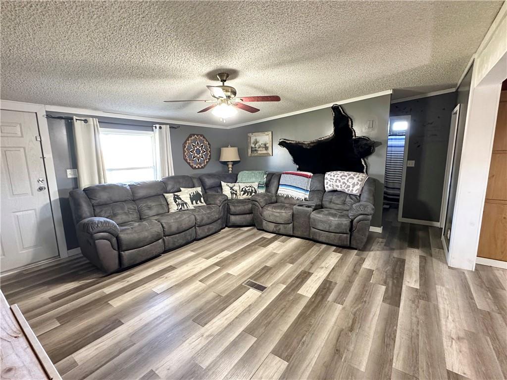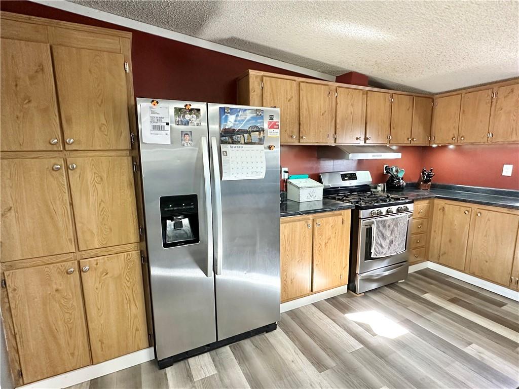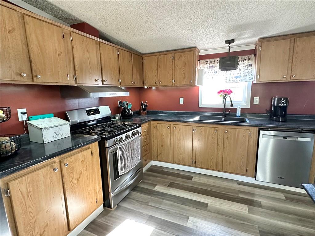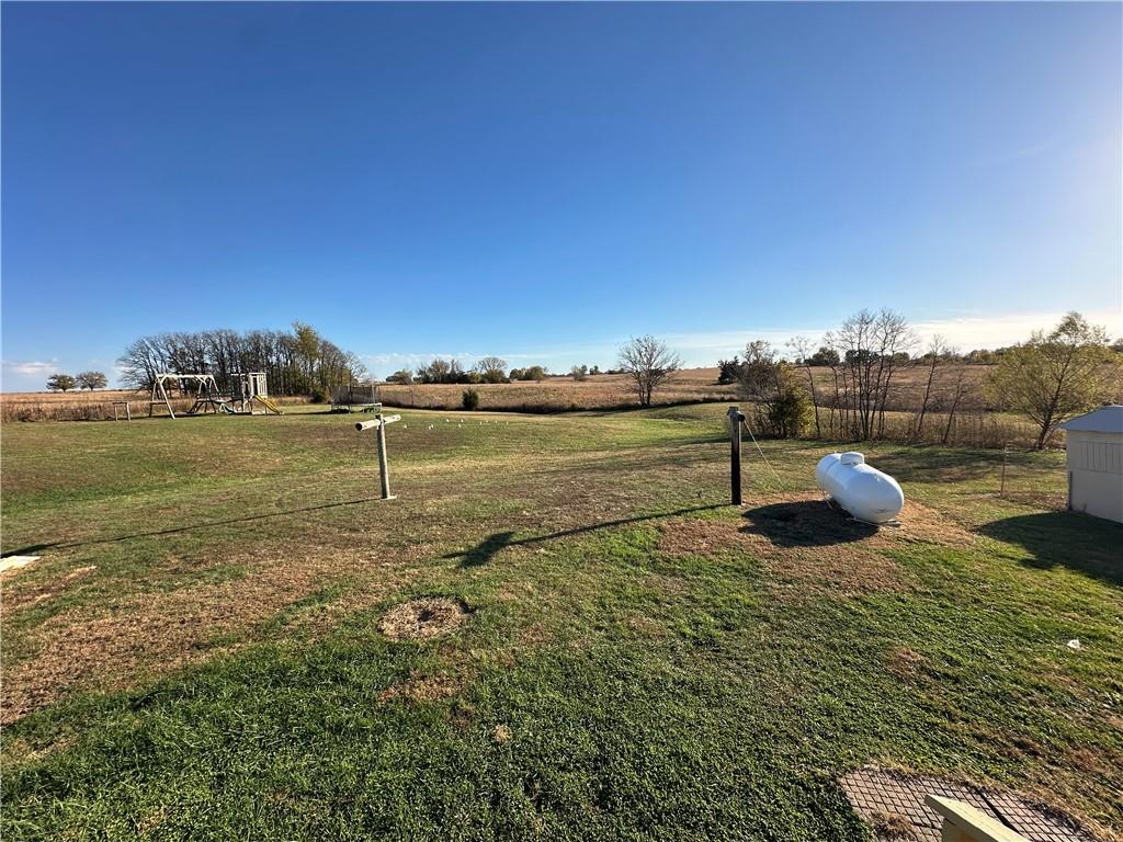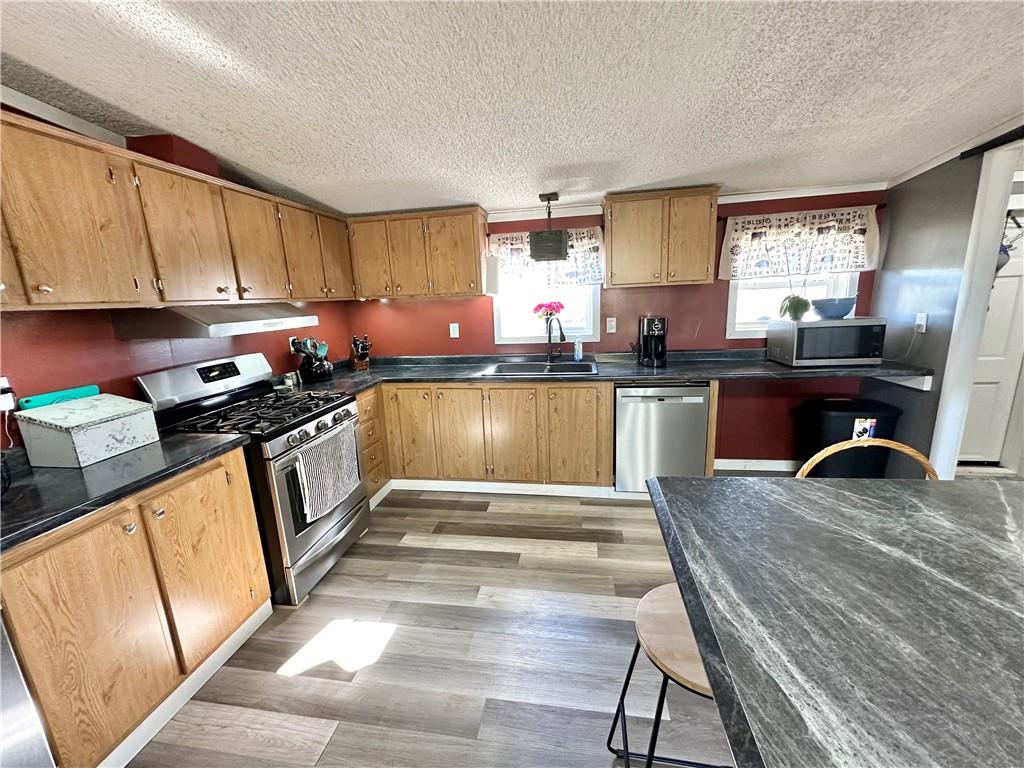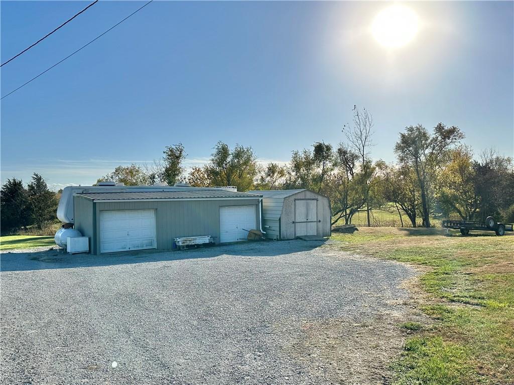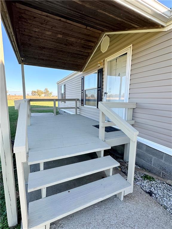You don't want to miss this adorable 3 BD, 2 BA home on 4 acres....on blacktop! Ready to move into & updated throughout. Open floor plan. The kitchen features a kitchen island, ample storage & stainless steel appliances that stay! (refrigerator, gas stove, dishwasher & microwave) The laundry room is off the kitchen (washer & dryer stay). The living room is open to the kitchen. Entertainment center with fireplace stays! The master bedroom has a walk in closet and a spacious master bathroom featuring a shower & a garden tub. The two additional bedrooms are on the other side of the house, along with the 2nd full bathroom. You will love sitting on your covered deck watching the kids run and play or just having your morning coffee. Metal roof. 2 car detached garage w/concrete floors & electric. Storage shed.