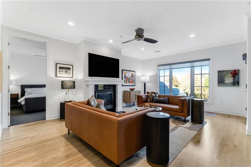 Completely Updated Luxury Condo in a Prime Location! Discover upscale living in this beautifully remodeled 2 bedroom, 2.1 bath condo with a dedicated office space or second living area. This second-floor unit has been completely updated from top to bottom! Enjoy fresh paint throughout, refinished hardwood floors and professionally remodeled bathrooms featuring new flooring, countertops, lighting and fixtures. The kitchen shines with resurfaced cabinets, new countertops, and new appliances - perfect for the home chef. Additional upgrades include new LED can lighting, ceiling fans throughout and a cozy gas fireplace. Step outside to your private balcony, facing north for peace and quiet away from highway noise. This unit comes with 2 garage spaces and a storage unit for convenience. Move right in and start enjoying maintenance-free condo living - close to restaurants, entertainment and shopping. Nothing left to do but unpack and Enjoy!