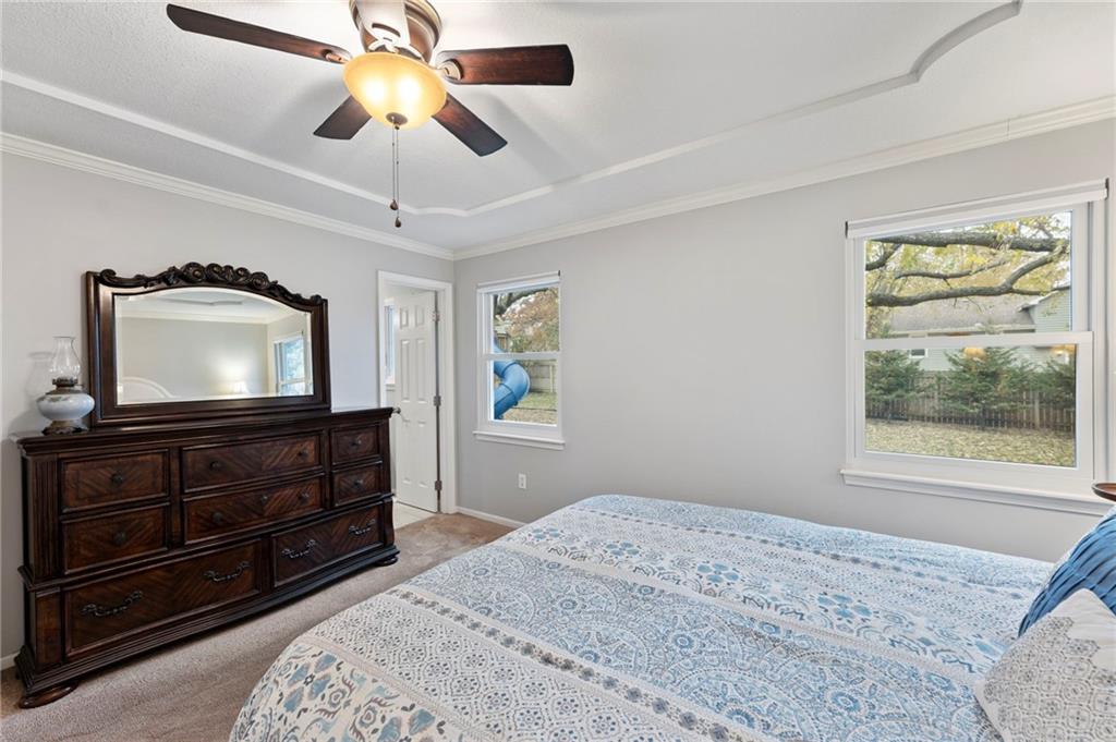 Nestled in a quiet, limited-access subdivision just minutes from Oak Park Mall, this beautifully maintained home is bursting with updates, space, and charm. A new roof (2025), energy-efficient Renewal by Andersen windows, and a premium Andersen sliding glass door set the tone for quality and care throughout. Inside, you’ll find an inviting open-concept layout that flows effortlessly over rich scraped wood floors—ideal for both everyday living and entertaining. The updated kitchen features granite countertops, stainless steel appliances, and stylish modern fixtures, while all three fully renovated bathrooms showcase thoughtful design and craftsmanship. Downstairs, the finished basement offers a versatile office or family room complete with an updated bathroom—perfect for working from home, movie nights, or hosting guests. All kitchen appliances remain with the home, adding instant value and convenience. With a 2021 HVAC system, fresh interior and exterior paint, and a low-maintenance exterior, you can move right in and start enjoying your new home with peace of mind. Step outside to your private, fully fenced backyard—perfect for play, relaxation, and making memories. The yard features mature trees, professional landscaping, and even a custom-built treehouse with its own deck and slides! Location is unbeatable: just two blocks from a park with scenic walking and biking trails, and four blocks from the Flat Rock Creek swimming pool.