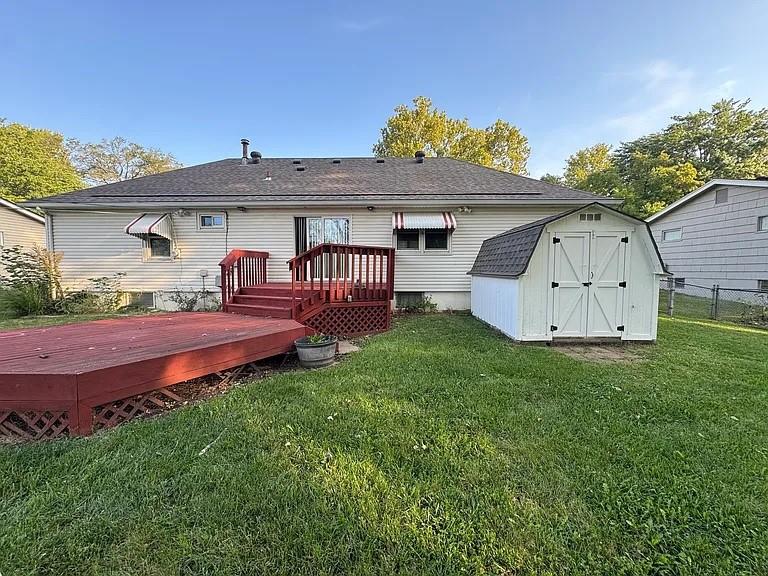 Call Heather at 913-269-6939 or Jerry at 913-669-8000. Safe and quiet neighborhood! This 4 bedroom, 2 bath home has a large two-tiered deck and private fenced backyard. The backyard also backs to the neighborhood park with a newer basketball court, covered picnic area, and a playground. The home has newer HVAC and roof and a full finished basement with recreation room, full bath, and the 4th bedroom (non-conforming). The main level has hardwood floors and a primary suite with access to a bathroom and ceiling fan/light. Professionally cleaned. Close to everything. Large bonus storage shed for lawn equipment and toys! Come take a look! It is available now to get settled before the holidays!
