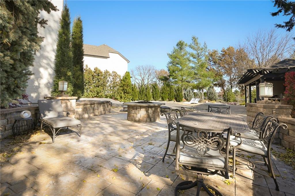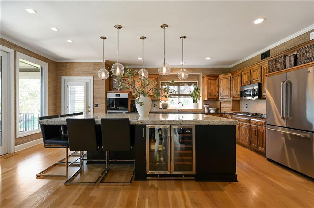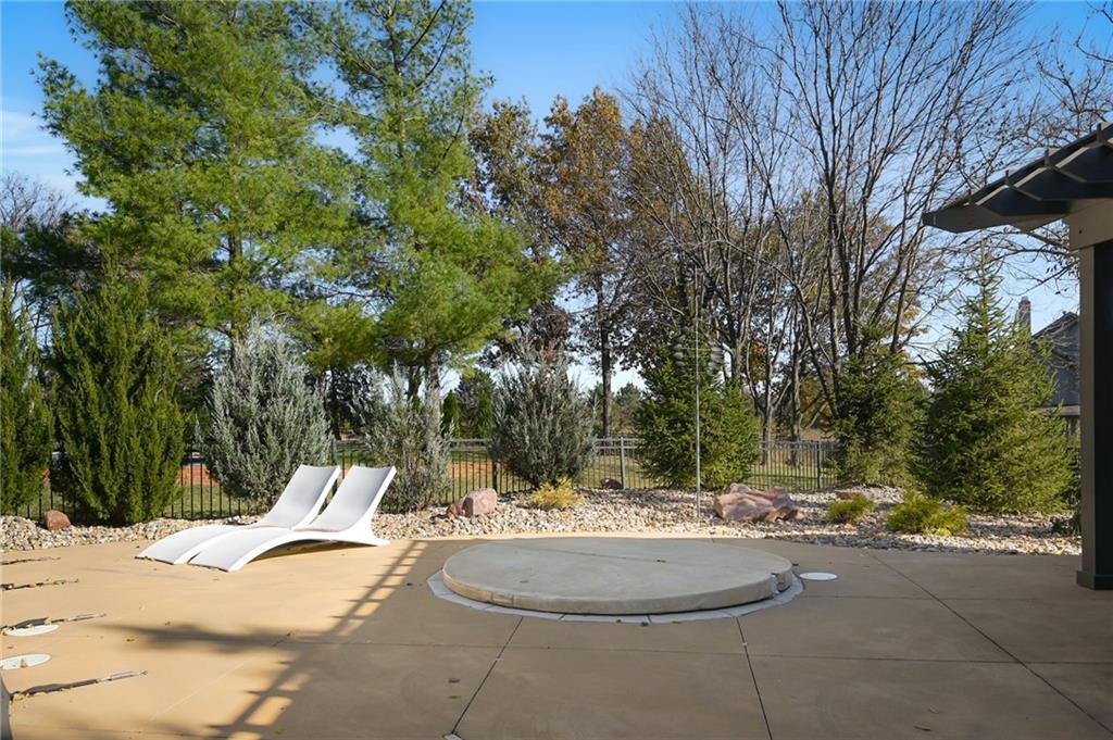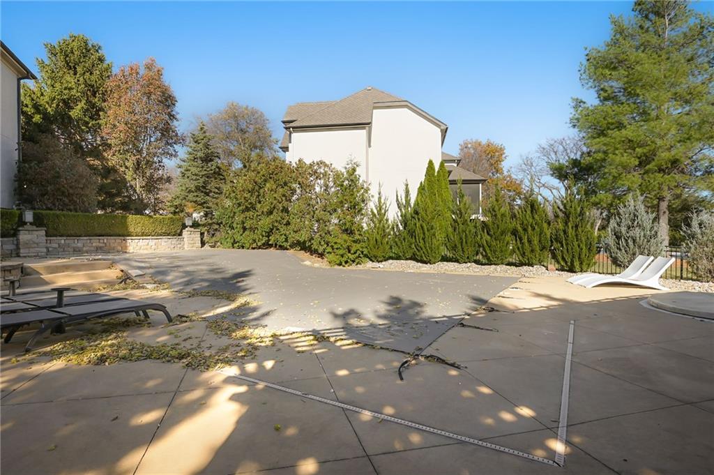 PHENOMENAL RESORT STYLE POOL and a BEAUTIFULLY UPDATED HOME together make this an incredible and rare find! This home has designer updates and lighting, newer main level wide plank wood flooring, updated kitchen with an oversized island, double ovens and updated paint and carpeting! The living spaces are bright and cozy, with main level office, entertaining space in the basement, basement bar and 5th non-conforming bedroom or flex room with full bath and steam shower. Lounge outdoors on the covered porch, and best of all...fall in LOVE with the absolutely STUNNING gunite saltwater pool and outdoor entertaining area! The cost to reproduce this backyard retreat is massive!. There is an amazing cabana with kitchenette, bathroom, and bar seating. The heated saltwater pool is surrounded by privacy trees with a hot tub. Gather around the built-in fire pit, or fire up the gas grill, this outdoor area is expansive and gorgeous! The pool was recently inspected and has been meticulously maintained. The expanded depth garage has epoxy floor, functional built-in cabinetry and work bench. The covered suspended porch offers additional storage underneath. All residing on a fantastic cul-de-sac lot in south Leawood's Hills of Iron Horse, adjoining to a golf course, just minutes from restaurants, coffee shops, Blu Hawk and Prairie Fire shopping, and in a nationally ranked school district! Up to $10,000 buyer closing credit offered by preferred lender!