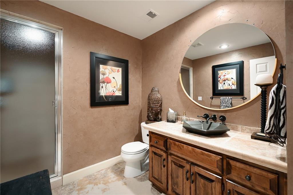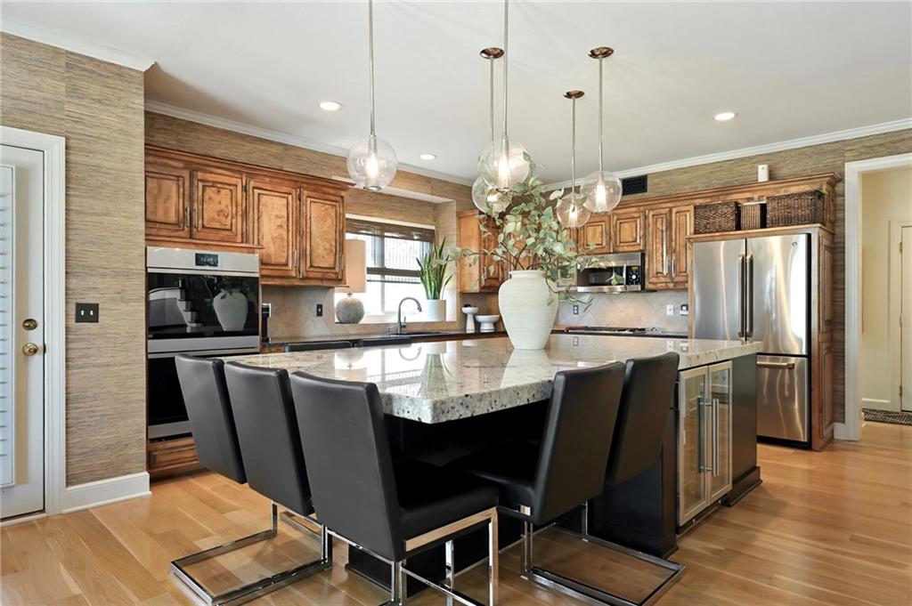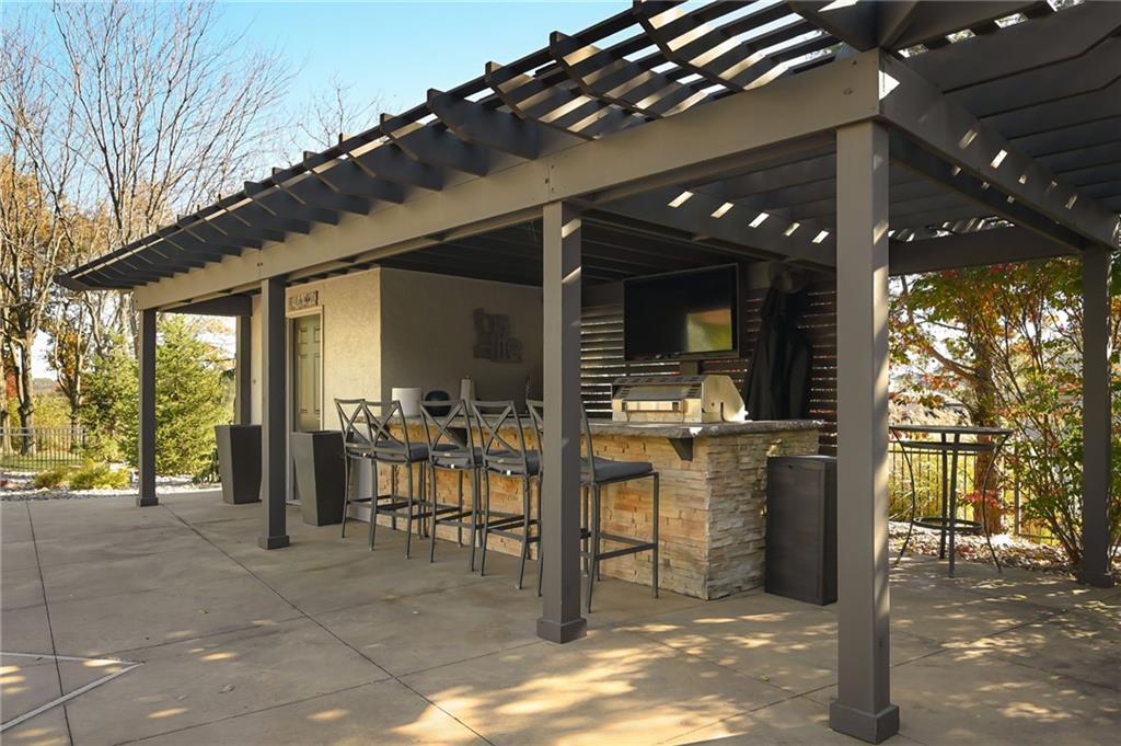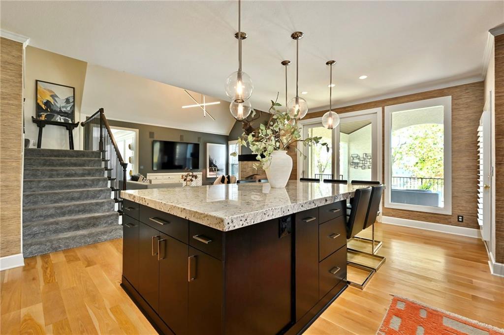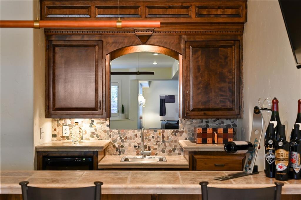 PHENOMENAL RESORT STYLE POOL and a BEAUTIFULLY UPDATED HOME together make this an incredible and rare find! This home has designer updates and lighting, newer main level wide plank wood flooring, updated kitchen with an oversized island, double ovens and updated paint and carpeting! The living spaces are bright and cozy, with main level office, entertaining space in the basement, basement bar and 5th non-conforming bedroom or flex room with full bath and steam shower. Lounge outdoors on the covered porch, and best of all...fall in LOVE with the absolutely STUNNING gunite saltwater pool and outdoor entertaining area! The cost to reproduce this backyard retreat is massive!. There is an amazing cabana with kitchenette, bathroom, and bar seating. The heated saltwater pool is surrounded by privacy trees with a hot tub. Gather around the built-in fire pit, or fire up the gas grill, this outdoor area is expansive and gorgeous! The pool was recently inspected and has been meticulously maintained. The expanded depth garage has epoxy floor, functional built-in cabinetry and work bench. The covered suspended porch offers additional storage underneath. All residing on a fantastic cul-de-sac lot in south Leawood's Hills of Iron Horse, adjoining to a golf course, just minutes from restaurants, coffee shops, Blu Hawk and Prairie Fire shopping, and in a nationally ranked school district! Up to $10,000 buyer closing credit offered by preferred lender!
