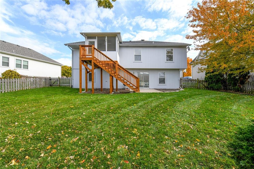 Pride of Ownership shows in this great updated HOME! Beautiful 4 bedroom, 3 bath, 3 car garage California split in sought-after Lee’s Summit School District with quick access to highway/shopping/groceries/etc. As soon as you enter the front door, you will fall in LOVE with the open floorplan and the beautiful updated fireplace/mantel in the vaulted great room. The bright kitchen is ready for holiday entertaining with a generous built-in pantry. The primary suite has a double vanity, private water closet, whirlpool tub, shower, and walk-in closet. The laundry is located off the bedrooms and renovated hall bath. The finished lower level has a 4th bedroom, bathroom, and family room that walks-out to the backyard. A big BONUS is the screened in deck (10X10) off the dining area. This one is a MUST SEE! This property has had so many updates - New trees SW corner of backyard & whole house surge protector in 2025 / Hall bathroom, kitchen plumbing, & stained deck in 2024 / Screened in new deck, fireplace, railings (wrought-iron), carpet (great room & stairs), paint (great room, kitchen, hallway, & laundry room), & shelving in laundry room in 2023 / Kitchen cabinets painted, Granite countertops, title backsplash, landscaping & firepit, & exterior of house painted in 2022. Look under supplements for a complete list of home improvements. Plenty of storage in the sub-basement and an extra closet (19.6x15.6) Patio (13.8X9.6) This one is PERFECT for comfortable living and convenience!!!