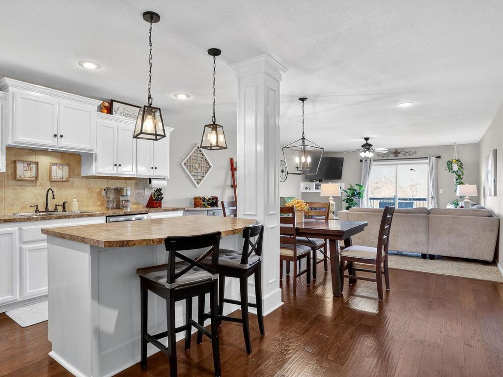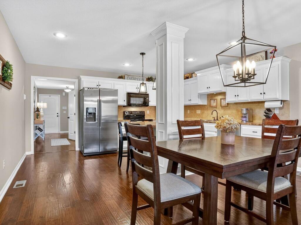 Tuscany Hills Townhome! This a 2+ Bedroom, 3.5 Bath home, 1 car garage & finished walkout lower level is spacious & very open! Great main level for everyday living. Entry features a Craftsman Front Door w/Storm Door, Ring Doorbell, Coat Closet, wall sconces, & Wood Plank Floors. Great Room features a Corner Gas Fireplace w/ceramic tile surround, painted mantle & hearth, Windows w/blinds, Ceiling Fan, & a slider door to the Deck. The Eat-In Kitchen opens to Dining for meals & hosting. Details include Pantry, painted cabinets, ceramic tile backsplash, 50/50 Stainless Sink, Pull-Out Trash, Cookie Sheet Cabinet, Eat-Up Island, Pendant Lights, & Appliances:Electric Range, Built-In Microwave & Stainless Dishwasher. A convenient Half Bath serves the main level. Upstairs offers 2 large suites! Primary Bedroom Suite offers a tray ceiling, ceiling fan, blackout blind, & a Walk-In Closet. Primary Bathroom includes a double sink vanity, w/ cabinet, Shower over Tub, & Linen Closet. The Front Bedroom Suite adds a accent Ceiling, large Closet w/attic access, & an adjacent Full Bath: Shower, Vanity w/Cabinet, tile floors! Laundry is on the bedroom level! Lower Level expands options as a large Family Room or potential 3rd Suite w/Full Bath, Walk-In Closet, & a slider to the Back Patio w/privacy wall. Plus Storage areas! Mechanical notes: brand-new Rheem Furnace, Aprilaire humidifier, AO Smith 40-gal water heater, radon mitigation, & a designated outlet circuit. Outdoor spaces include a Composite Deck w/ drink rail & aluminum spindles that backs to green space & woods, plus a private Back Patio. The Front-Entry Garage provides an insulated Door w/opener, shelving, floor drain, window, painted floor, & finished walls & ceiling. HOA supports low-maintenance living. Served by North Kansas City School District. Everyday needs are close by across the Northland including coffee, groceries, healthcare clinics, pharmacies, fitness centers, banking, & casual dining, w/quick access to 291 HWY.