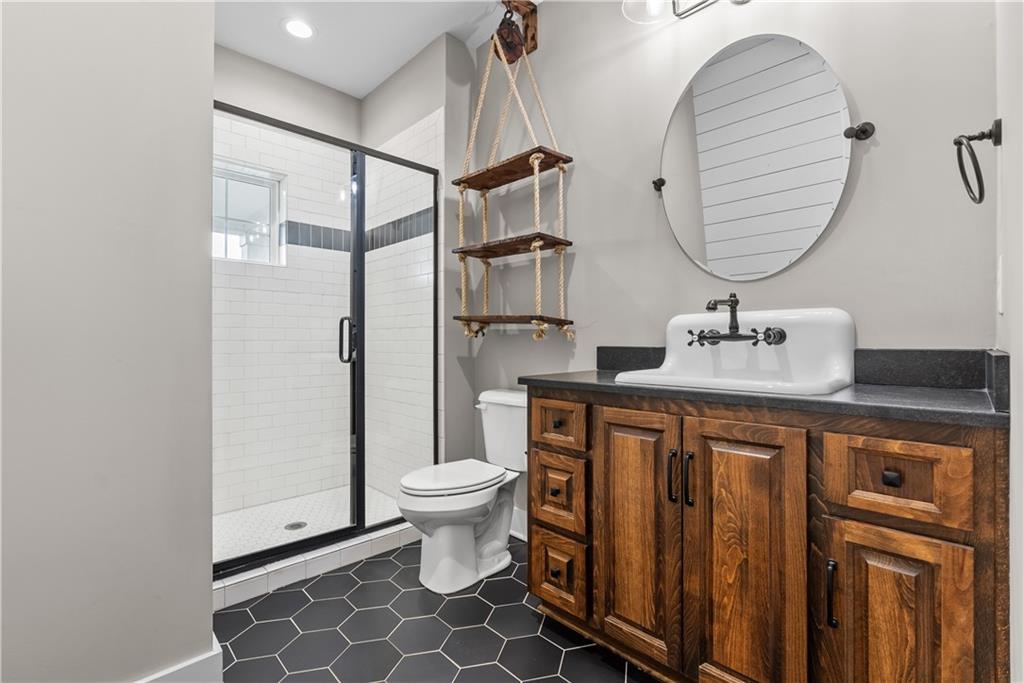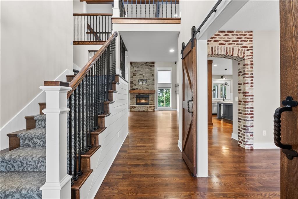 Stunning Modern Farmhouse situated on just over 1 Acre in the coveted Shadow Glen Subdivision. This Gorgeous 1.5 Story home highlights High-End finishes along with an open floorplan that is perfect for Entertaining! As you enter the home you are welcomed by gleaming hardwood floors thru-out and vaulted ceilings. The Great Room boasts a beautiful Stone Fireplace (wood burning), wood beams and floor-to-ceiling windows! Gourmet Kitchen features an oversized Island, custom cabinetry, granite Counters, Gas range + Double oven, Coffee bar & Large Walk-in Pantry. Just off the kitchen is the Screened-in Deck overlooking the peaceful fenced-in yard backing to trees and greenspace! Spacious Main Floor Master Suite boasts jaw dropping Ensuite Bath and Large Walk-in closet. Main level also highlights Formal dining room, 2nd Bedroom + Full Bath and Laundry Room. Upper Level offers 3 Bedrooms, Full Bath and the possibility to finish living space over the garage. Daylight lower level offers bountiful storage or the opportunity for future finish & stubbed for a Full Bath and Safe room under the front porch...so many possibilities! Enjoy catching sunrises and sunsets on the Large front porch or out back on the back patio. Additional features include an In-ground sprinkler system, 2 HWH, Security system & Expandable attic! Home is a Must See!