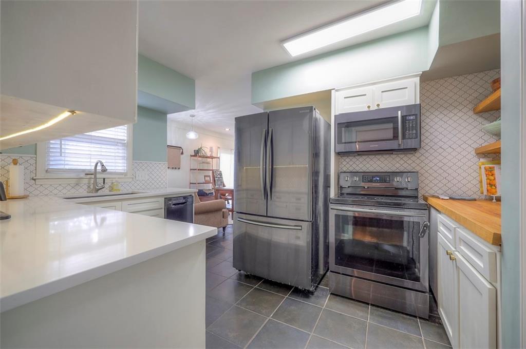 This home has had several updates by the current owner such as quartz counters in the kitchen and added a dishwasher and microwave and refrigerator that stays. The bathroom on the main floor has also been updated and the main floor has all wood floors throughout! The large sunroom with large windows off of the kitchen is a perfect gathering place in the summer or to watch snowing in the winter with a large slider opening to the fenced yard! The HV/AC was replaced just two years ago and the roof was replaced just eight years ago. The one car garage that faces the front has a double wide driveway for parking and on the side of the house there is another driveway that leads to the second garage. An oversize workshop is in the basement next to the garage entrance. The outside of the home does have some peeling paint and is being sold in that condition.