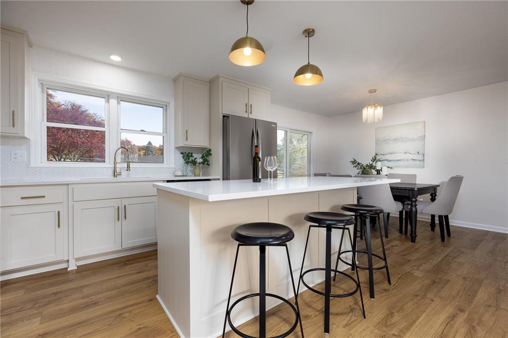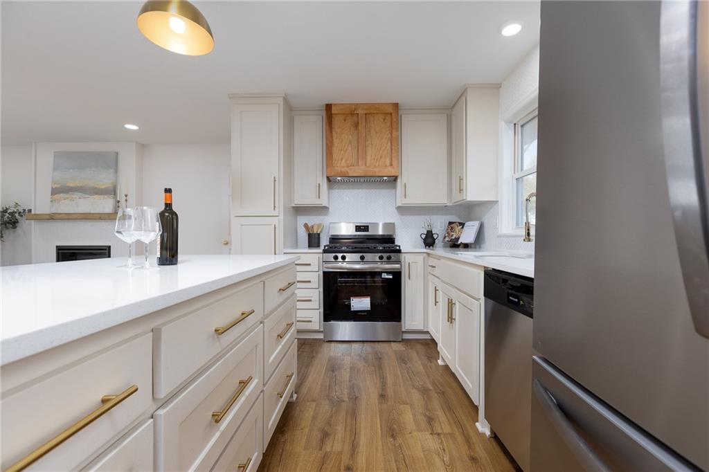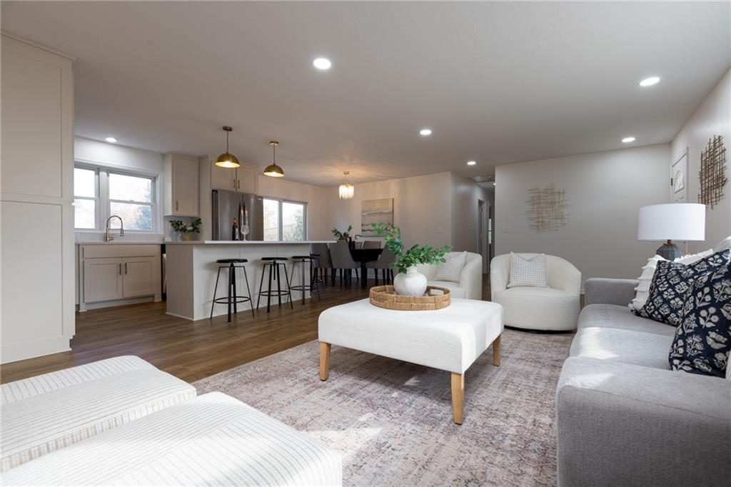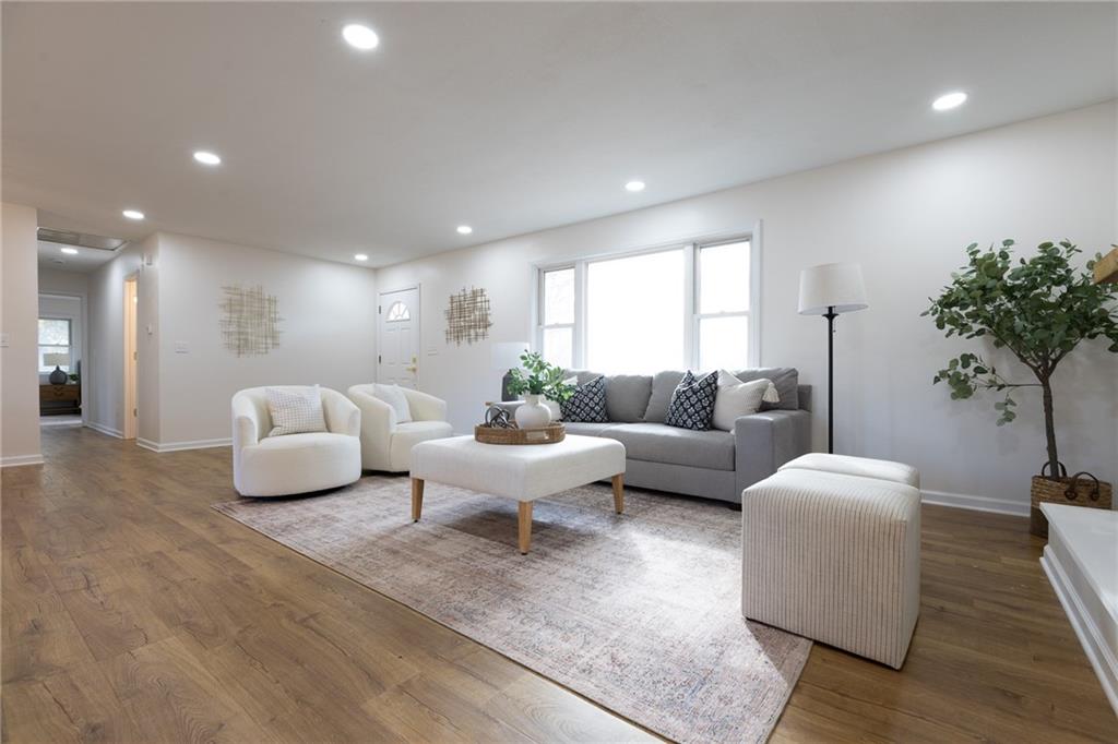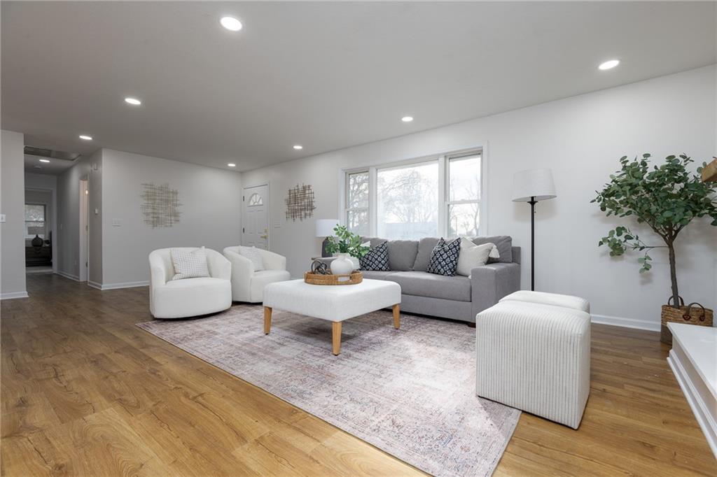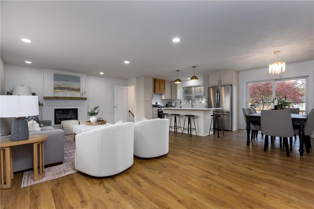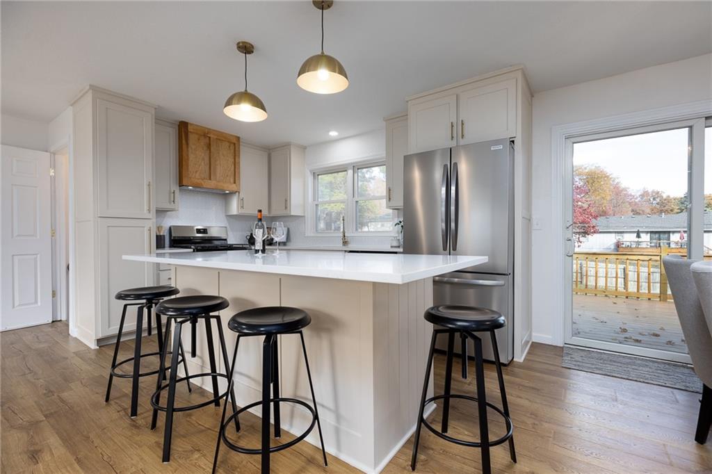Shows great with all new!!! Spectacular home with new exterior & interior paint. Open plan with new electric fireplace in the Living room opening to the Spacious Kitchen and Breakfast Area. Quartz counters & Island. New Cabinets & drawers, sink, fixtures, appliances. 3 sizeable bedrooms on the main floor. New Hall Bath. New Primary Bedroom Bath. Full finished Rec Room. Huge deep Oversized 2 car side entry garage. Brand New 23x14 Deck overlooking the large privacy fenced back yard. New front deck/porch. Central air 3 years, Furnace 5 years, Hot water heater 2 years. Nice quiet neighborhood with easy access to I-70 Hwy and shopping. This a beautiful newly refinshed home!