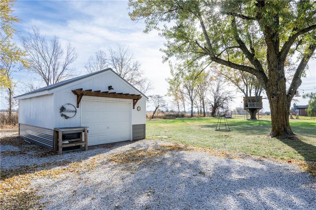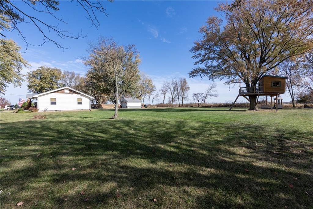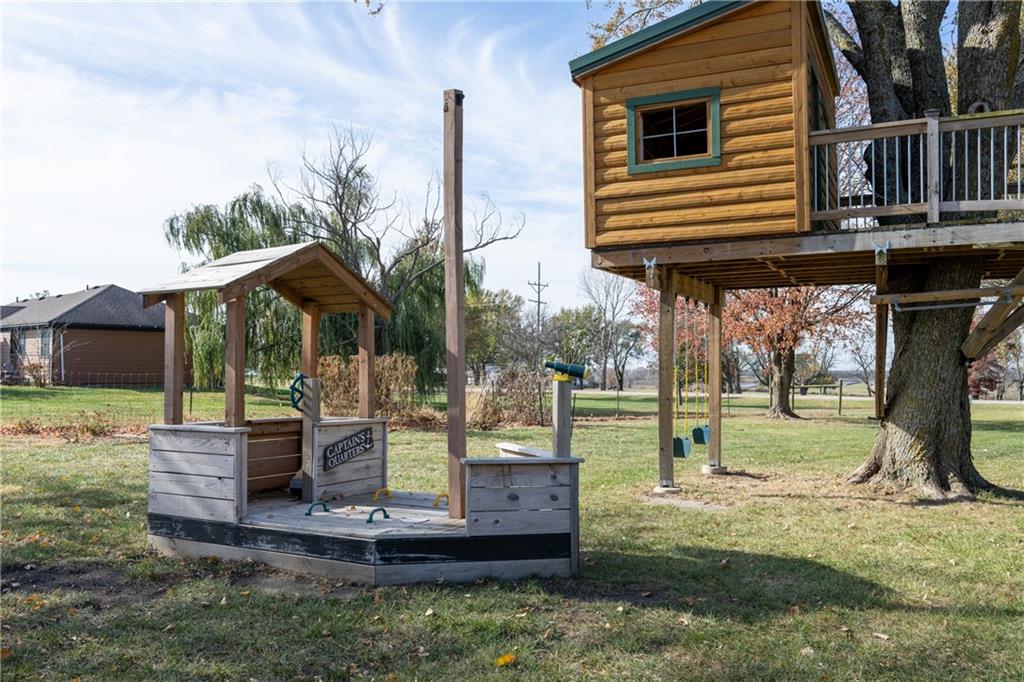 Freshly updated ranch home in the Louisburg School District with a bright, open layout. Situated on paved frontage and just a short drive to Hwy 69, making Overland Park easily accessible. The lot is shaded by mature trees and offers a standout backyard setup, including a custom-built tree house with a zip line and a boat themed sand play area, an outdoor space designed for fun and imagination. Move-in ready and set up for easy living!