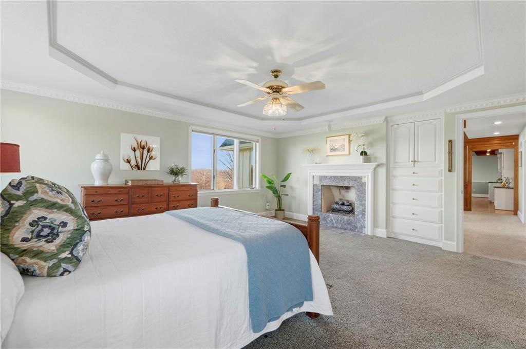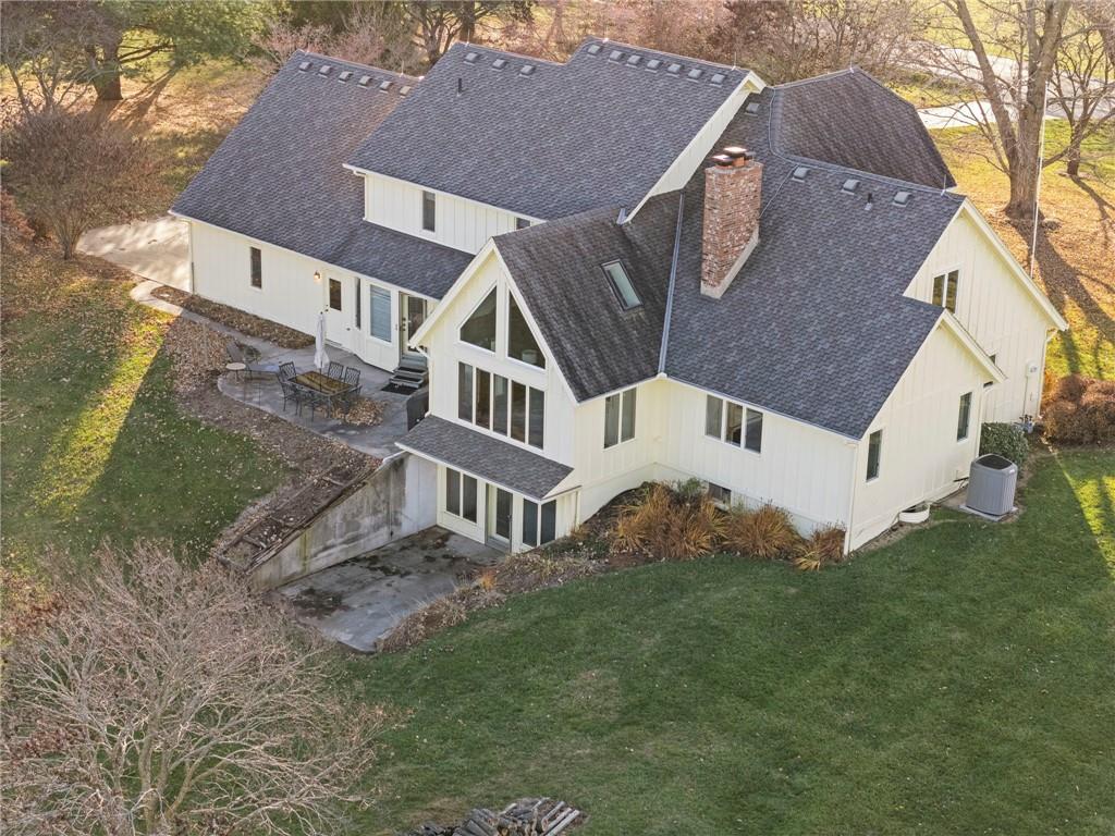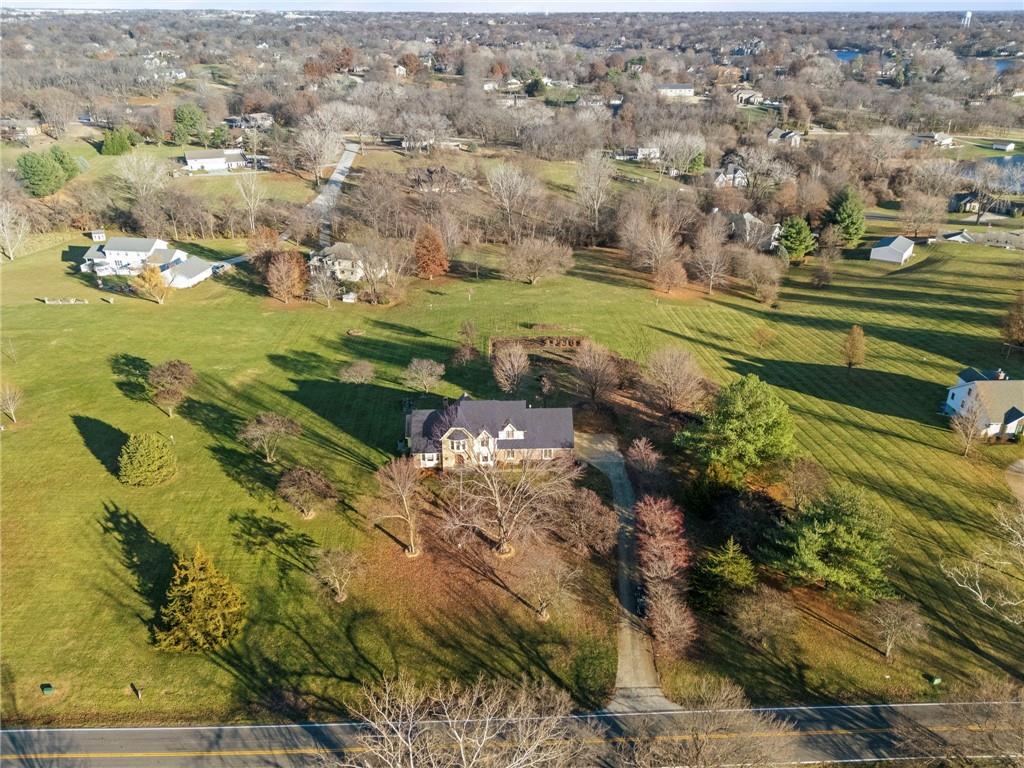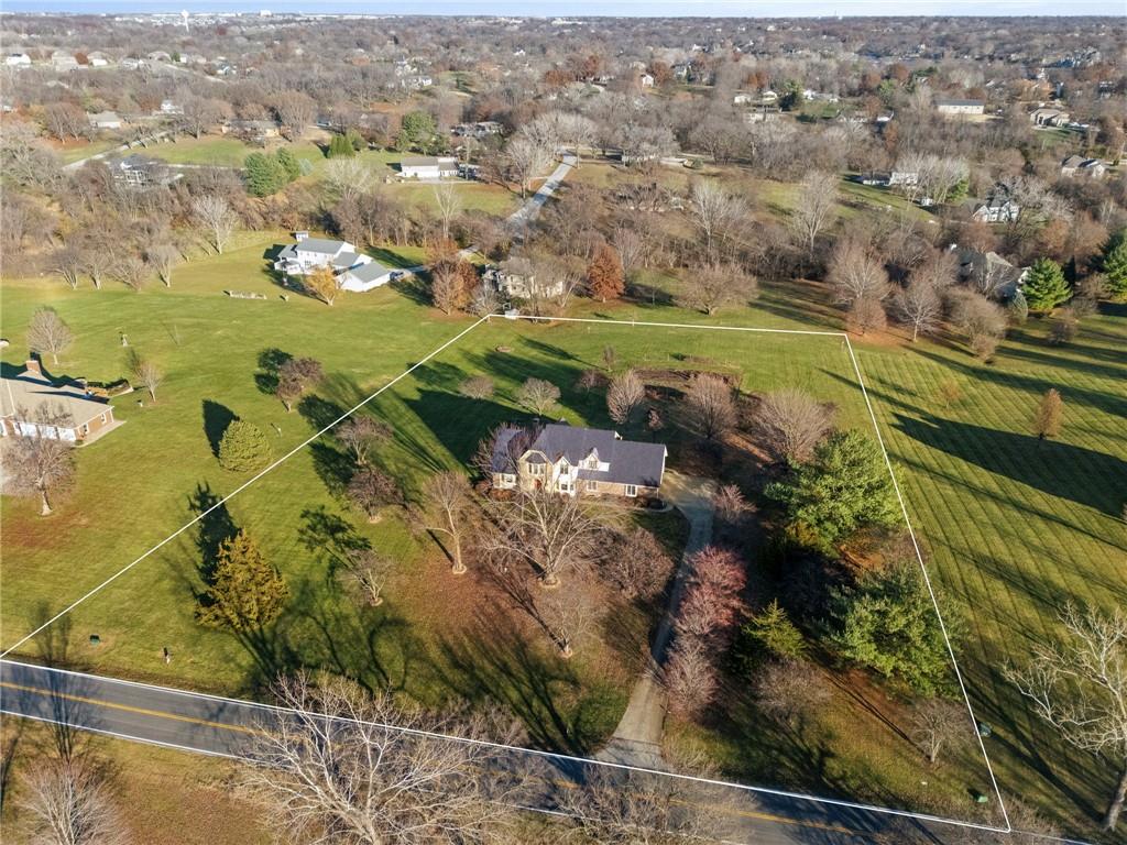 If you’ve been waiting for a home that truly stands apart, this one delivers. Set on nearly 3 serene acres in Weatherby Highlands, tucked inside unincorporated Platte County, this 1.5-story offers the privacy of country living with the convenience of the city within minutes in all directions. The great room steals the show with grand vaulted ceilings with rich wood beam accents, skylights, and a soaring wall of windows overlooking your land. Enjoy a glass of wine with friends gathered around the fire burning in the brick fireplace of the great room. The updated kitchen features hardwood floors, painted cabinets, coffered ceiling, granite counters, island with gas cooktop, generous pantry, and an inviting breakfast area wrapped in natural light and overlooking the patio. Formal dining and main-level laundry make everyday living easy. Your main-floor primary suite is spacious, filled with natural light and offers a sitting area in front of the private fireplace. The primary bath features double walk-in closets, dual sinks, and a jetted tub surrounded by natural light. The 2nd level overlooks the great room below, and offers 3 large bedrooms, 2 full baths, and a loft with custom built-ins that work beautifully as a library or gathering area. The unfinished walkout basement offers incredible potential. With a brick wood-burning fireplace already in place, this level is primed for a future media room, game area, or guest suite. Outside, the property shines with open lawn space, fruit trees, bluebird houses, and a garden full of established strawberries. It’s a peaceful setting you rarely find this close to Kansas City. This property fulfills the desire to escape city life and settle into the luxury of this home and the joy of having a few acres of serenity. This is the kind of home that makes buyers stop scrolling and start dreaming. This property is within 15 minutes of KCI airport, Zona Rosa and The Legends.
