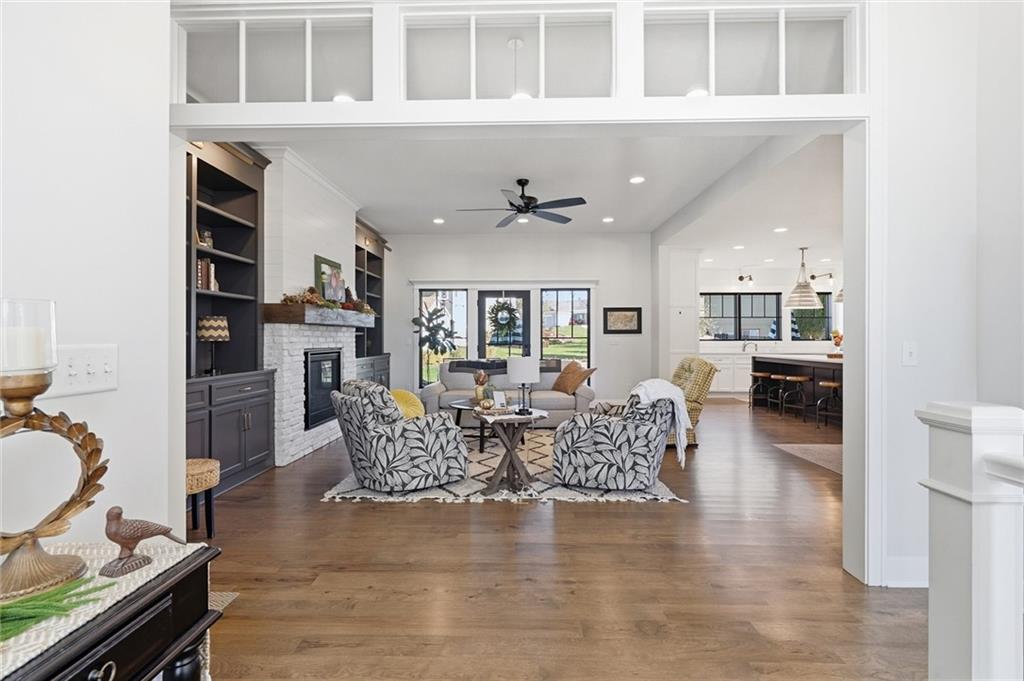 Welcome to this exceptional, custom built, main-level living home within the beautiful Signal Ridge Subdivision. This stunning home features 3 spacious bdrms, 2.5 bathrms, an open floorplan with hard wood flooring, lg windows allowing for an abundance of natural light throughout, plus so much more!! Step into entryway to be greeted with 12' ceilings, picture windows, & custom brick in-lay flooring. The living room showcases a gas Heatilator fireplace & brick surround, along with custom cabinetry with lighting, AND do not miss the detailed glass transom entry! The kitchen has beautiful countertops & backsplash, double ovens, a generous kitchen island for culinary space & seating for 4, plus a huge walk-in pantry. The dining rm, complete with a serving area & stunning glass front cabinets, opens into the kitchen & living rm, creating a floorplan perfect for entertaining or lg family gatherings. Retreat to the spacious main-level primary bedroom complete with an ensuite including a large walk-in shower, soaking tub, double sinks, & huge closet with laundry access. 2 add'l spacious bedrms, & 1.5 baths are also located on the main level. There is over 2000sqft of space to expand in the basement, including an egress window for a 4th bedrm, & plumbing in place for a full bathrm. The 2 car garage features a pass through to a 3rd garage & access the backyard, perfect for storing a golf cart or lawn equipment. After a long day, relax in the cozy backyard under the covered patio overlooking beautiful landscaping. From the custom interior lighting, beautiful trim, windows and doors, to the exterior metal awnings, cedar accents, front porch, and irrigation system, this home has exceptional design details both inside and out! Just minutes away from quaint downtown Baldwin City, schools, Performing Arts Center, & the peaceful Douglas State Fishing Lake, & within an easy commute to KC, Lawrence, Ottawa & surrounding, this property has it all! PRICED UNDER COUNTY APPRAISED VALUE!