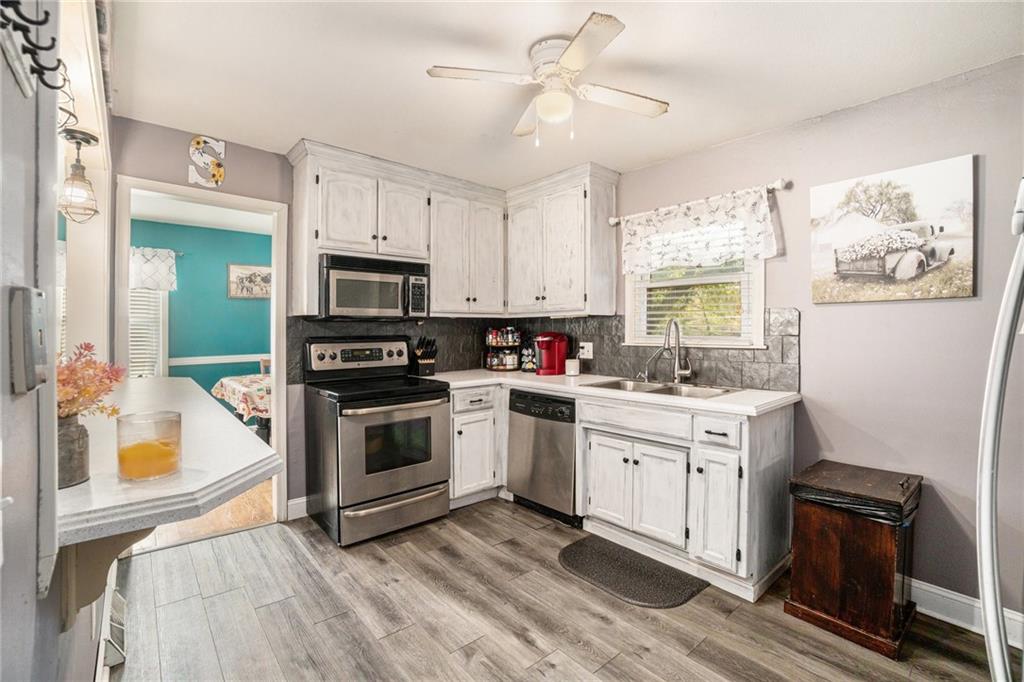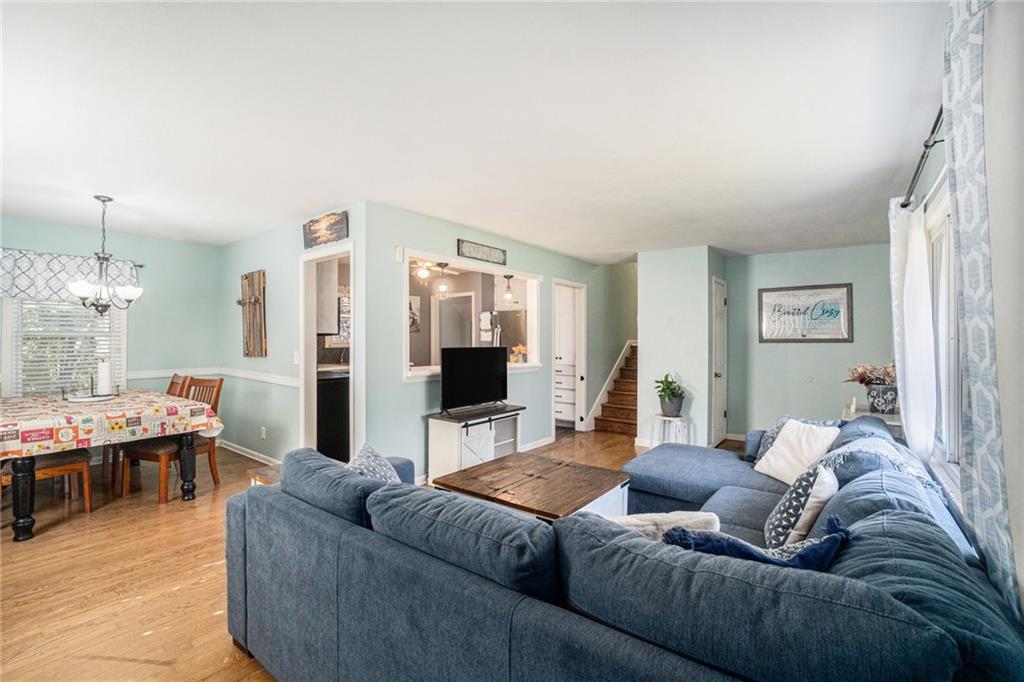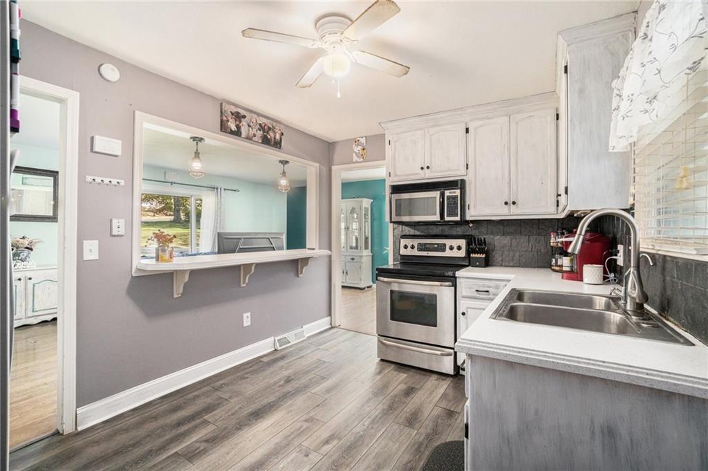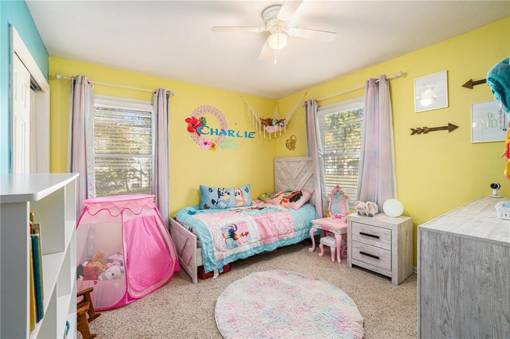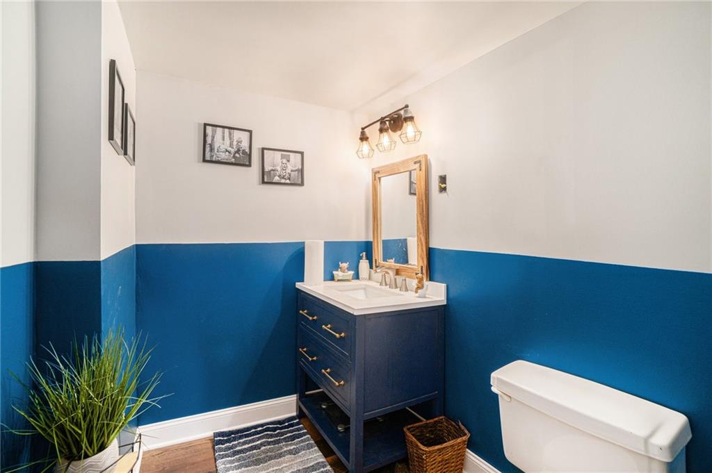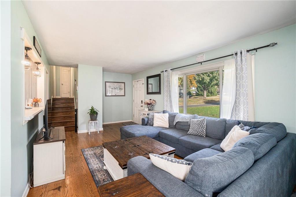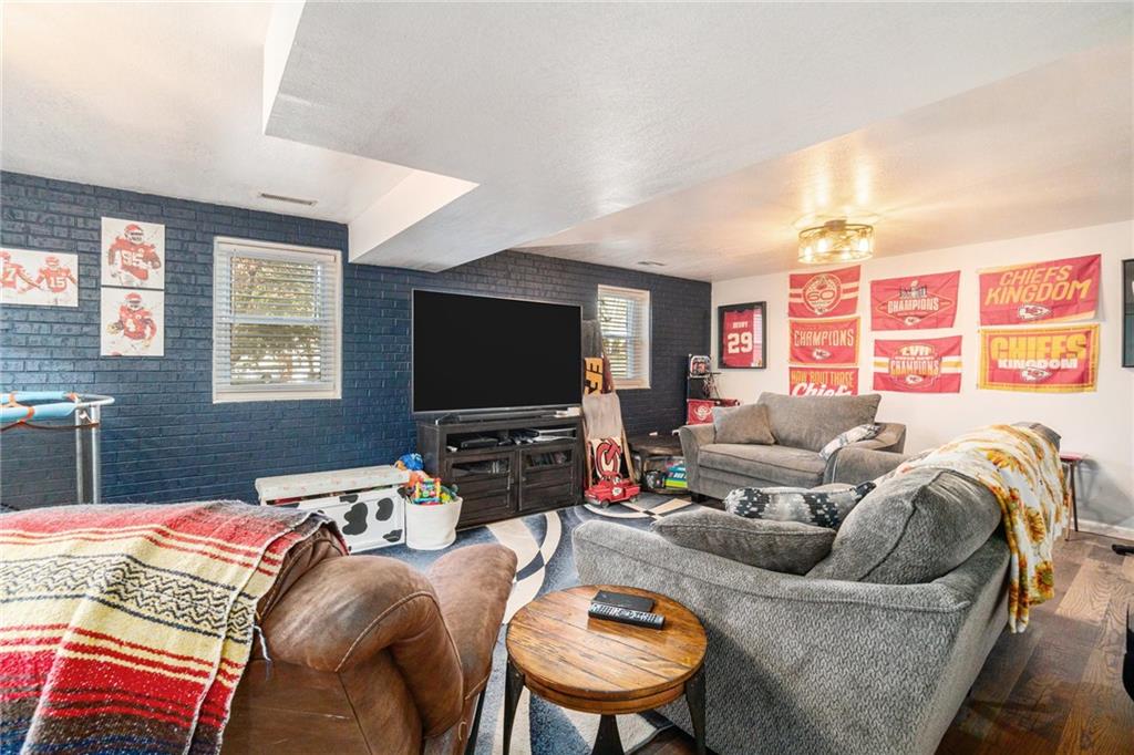 This home is absolutely adorable and full of unique charm. As you step through the front door, you’re greeted by a cozy living area that flows seamlessly into the dining room. The kitchen connects to both spaces, completing the main floor layout and making it perfect for entertaining. Beautifully maintained wood floors run throughout the main level, and the freshly updated kitchen features custom cabinetry and stainless steel appliances. Upstairs, you’ll find the primary bedroom with an ensuite bathroom, along with two additional bedrooms and another full bath. The finished basement offers a large recreation room with a newly built wet bar, modern finishes, and a half bath. One wall showcases a charming exposed brick accent that adds warmth and character to the space. Outside, the fenced backyard is ready to be enjoyed with a fire pit, outdoor storage shed, and plenty of room to relax or play. Situated on a corner lot with a two-car garage, this home is as inviting as it is unique.