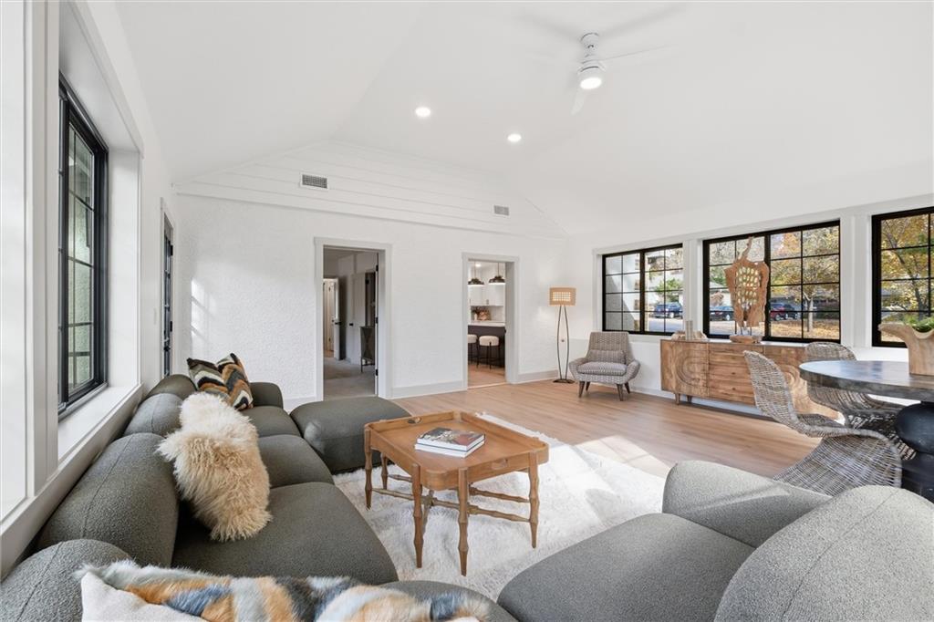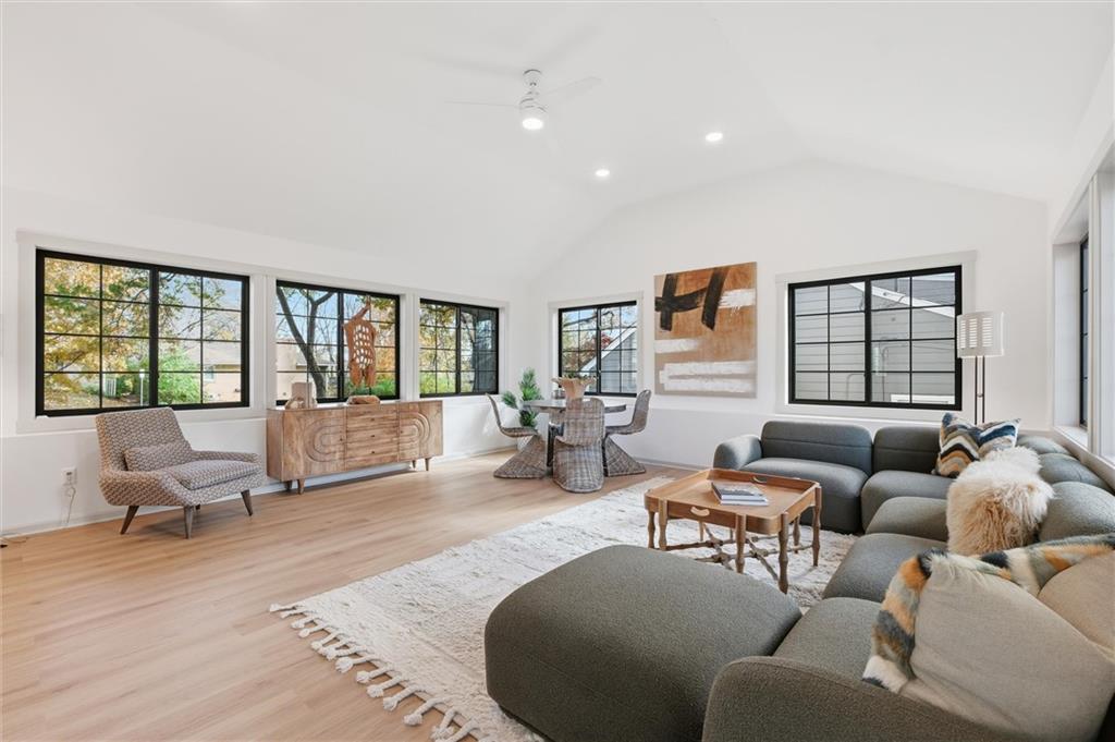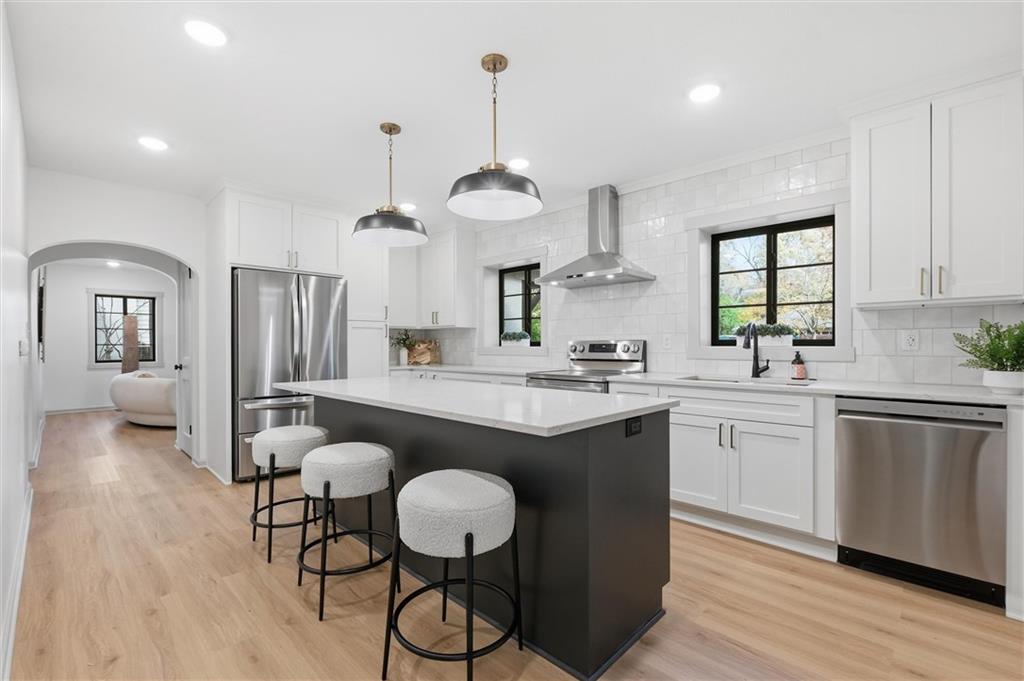 OPEN HOUSE Saturday 11/15 & Sunday 11/16 11am- 2pm. Top quality renovation updated inside and out down to the studs on the edge of KU campus. Easy walk to class, Allen Fieldhouse and David Booth Kansas Memorial Stadium. Virtually everything is new: architectural roof, all new high efficiency HVAC and water heater, brand new electrical and plumbing. All new windows, maintenance-free LP SmartSide exterior and composite deck. Fabulous white kitchen with stainless steel appliances and vent hood, amazing sun splashed living room with soaring ceiling. Two generously sized bedrooms on the main floor flank full bath with walk-in shower, double vanity and designer tile. Lower level bar functions as second kitchen allowing for optional second independent living space with it’s own entrance, dedicated laundry and two additional conforming bedrooms. 2-car attached garage, with secure wall between the two bays and a driveway that can fit half a dozen more vehicles! Beauty here is more than skin deep; dry basement, brand new sewer line and the entire structure is made out of rock CONCRETE (everything-- the interior and exterior walls, the floor system and ceilings)-- this house is literally rock solid! University Place neighborhood is steeped in history with Frank Lloyd Wright influences (Wright himself designed the house across the street for Architecture Professor George Beal). James Naismith was an early developer of the subdivision. Mature trees, smart people, and the amazing cornucopia of the University of Kansas libraries, music, art, speakers, and sports all within a few blocks.