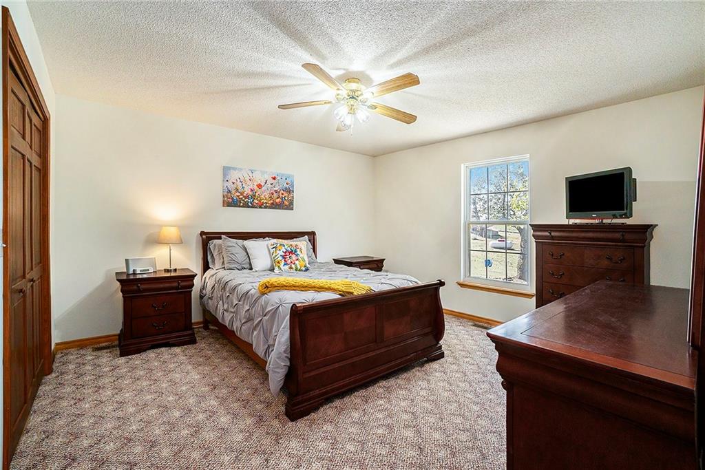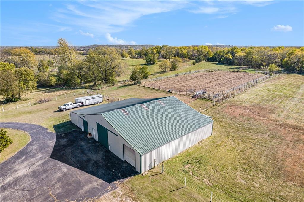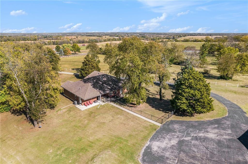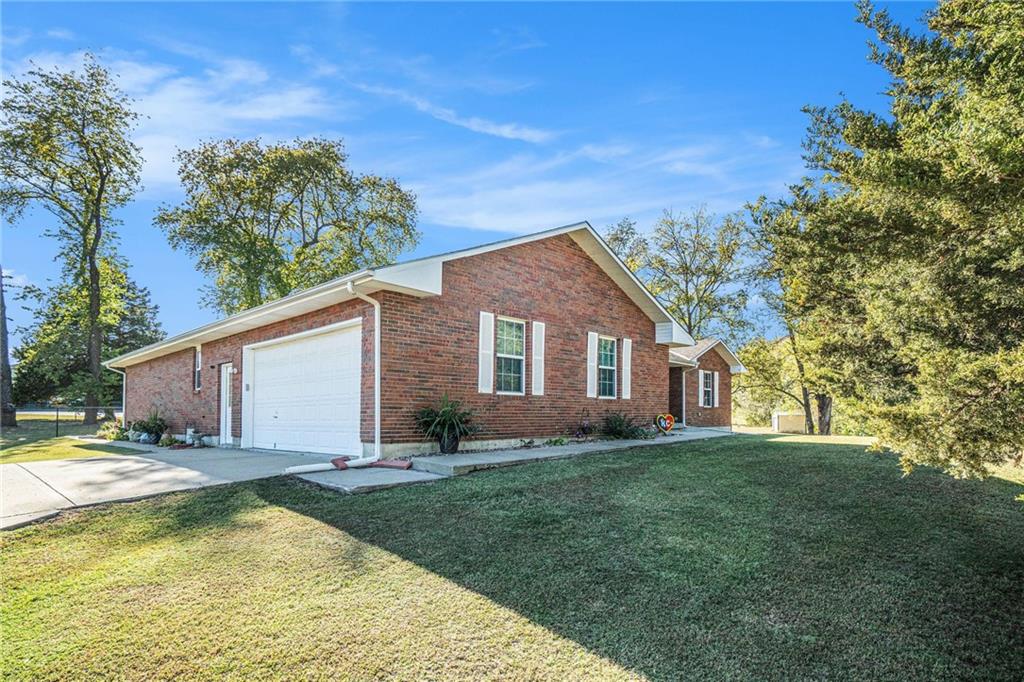 Experience the perfect blend of comfort, function, and country living at 22543 Dempsey Road in Leavenworth, Kansas. Situated on 19.27 acres along a blacktop road, this beautifully maintained brick home offers over 4000 square feet of living space designed for both everyday living and entertaining. Inside, you’ll find three bedrooms and two bathrooms on the main level, including a spacious primary suite. The open kitchen features generous counter space, an eat-in area, and flows naturally into a formal dining space and living room, creating a warm, inviting atmosphere. Downstairs, the finished walk-up basement includes three non-conforming bedrooms, a full bath, and its own private entrance — perfect for a guest suite, multigenerational living, or home office. Step outside to enjoy mature trees, a shaded backyard, and sweeping views of the surrounding countryside. The property is fully fenced and cross-fenced into multiple pastures, ideal for horses or livestock. The 60' x 86' barn includes five stalls with runs, a spacious storage area, and room for equipment or tack. A roping arena and small pond add to the functionality and beauty of this turnkey horse property. If you’ve been looking for a place that combines rural charm with modern amenities, this property delivers — space, privacy, and practicality all in one.