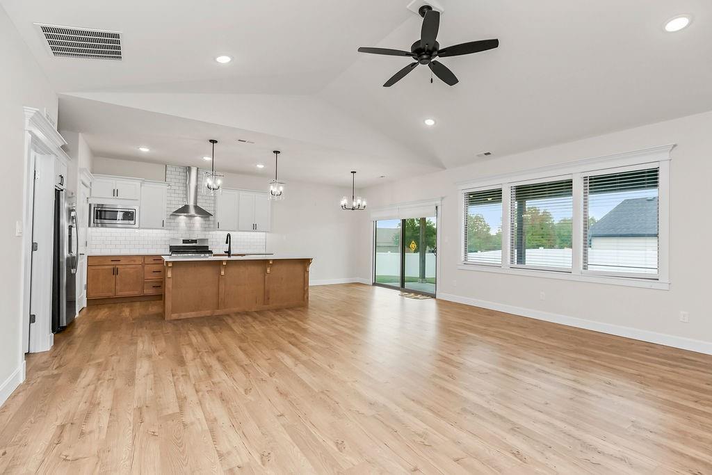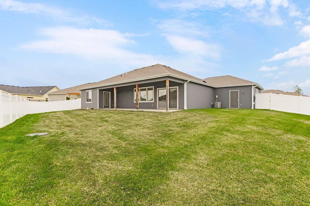 This beautifully updated ranch combines comfort, style, and effortless single-level living. The living room features a cozy fireplace and flows into a bright, two-tone kitchen with white upper cabinets, warm wood lower cabinets, quartz countertops, a center island, and a pantry—perfect for cooking and entertaining. Three spacious bedrooms include a primary suite with wood ceiling accent, a double vanity, and a bath with playful green touches. Outside you will find a fenced backyard with a patio, and enjoy the convenience of a three-car garage. This move-in ready home is as functional as it is inviting.