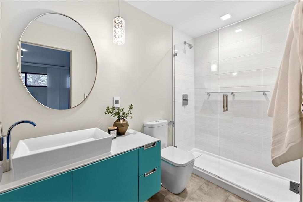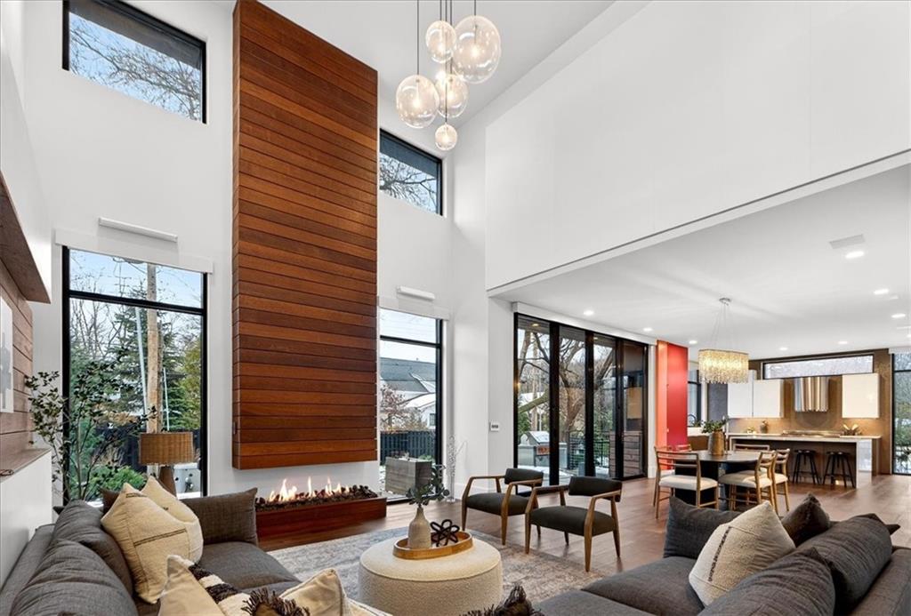 This is modern Prairie Village at its best—bold architecture, refined design, and everyday convenience with the Village Shops just steps away for coffee, dining, and easy living. The moment you step inside, the home delivers presence. A dramatic entry, beautiful wood details, and natural light moving through the space all day long. The main-floor office, wrapped in windows, offers a calm and inspiring place to work or think. The kitchen is a standout—sleek custom cabinetry, a large waterfall island, and Bertazzoni appliances that bring both performance and style. It opens seamlessly into the dining area and great room, where 20-foot ceilings and full-height sliding doors create an effortless connection to the outdoors. Upstairs, three generous bedrooms and a second-floor lounge carry the modern design forward. The primary suite feels elevated and serene, with a spa-like bath featuring a soaking tub, oversized shower, and beautiful light. A fourth bedroom in the lower level provides ideal flexibility for guests, extended family, or a private studio space. Outdoor living is exceptional. The second-floor covered deck with fireplace offers a year-round retreat above the neighborhood, and the front terrace provides another inviting place to unwind. Throughout the home, thoughtful details stand out—wide-plank hardwood floors, designer lighting, and a sculptural open staircase that anchors the interior architecture. Modern, warm, and impeccably designed, this Prairie Village home offers an elevated lifestyle in one of the city’s most desirable locations.