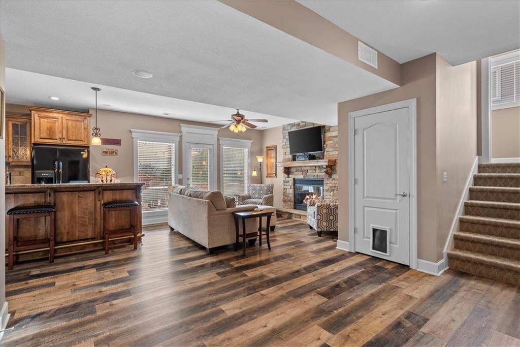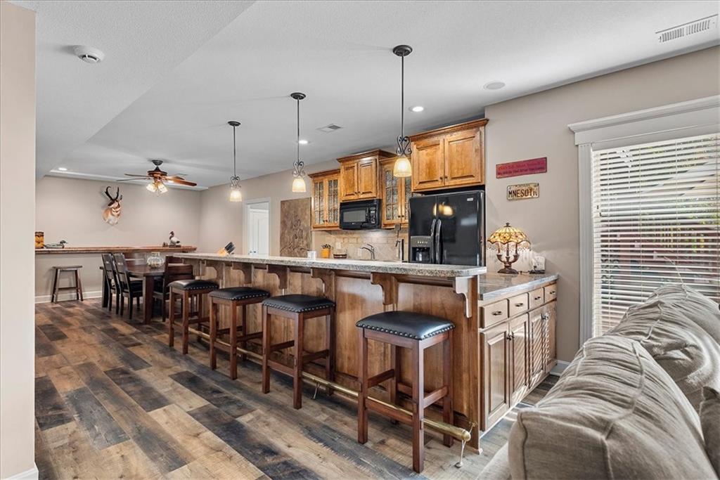 Meticulously maintained in Cedar Creek, this home offers an easy, open layout with great natural light throughout. The spacious living area connects to a well-appointed kitchen with stainless-steel appliances, granite countertops, and a large center island. The primary suite includes a large en-suite bath and walk-in closet. The two dedicated bonus spaces work well for either two offices, playroom, or extra living area. The walkout finished lower level adds even more space with a large second kitchen, rec room, an additional bedroom, and a full bath, perfect for guests or entertaining. Outside, enjoy a low-maintenance deck and mature landscaping. With excellent community amenities and a truly move-in-ready feel, this is a great find in Cedar Creek.