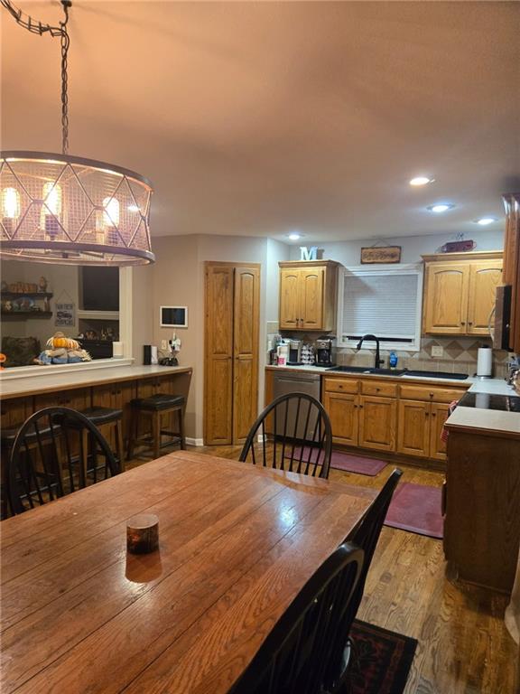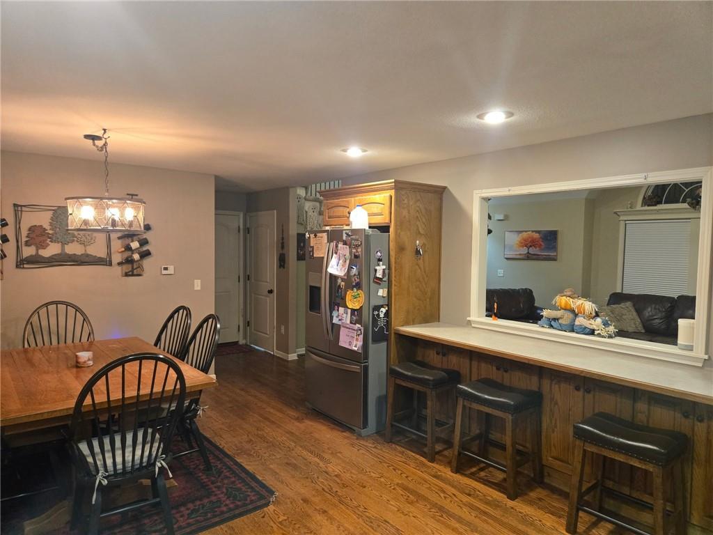 PROFESSIONAL PHOTOS HAPPENING TOMORROW! Well Maintained 5 BR, 3.5 Bath home backing up to a small lake for enjoying outdoor living on the covered deck and patio. Open, spacious floor plan with soring ceilings in the Living Room featuring hardwood floors throughout the main living areas. Ceramic tile floors in baths & laundry room. The upstairs features a Primary Bedroom plus Primary Bath, 2nd Full Bath and two additional Bedrooms. The lower level walkout, features two additional Bedrooms, a 3rd Full Bath plus laundry area. In Award Winning Louisburg School district and only minutes from south Overland Park. Enjoy small town living at it's best with the convenience of being close to the KC Metro and quick Hwy 69 access. Seller's providing an Old Republic Home Warranty to Buyer's!
