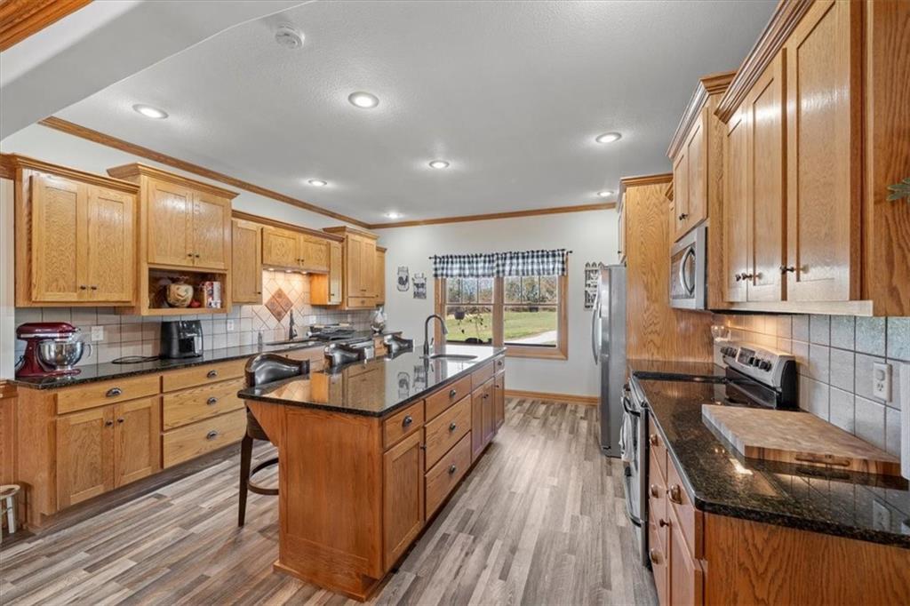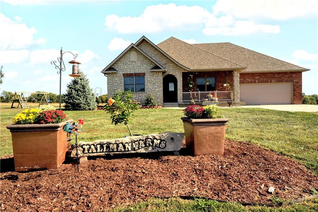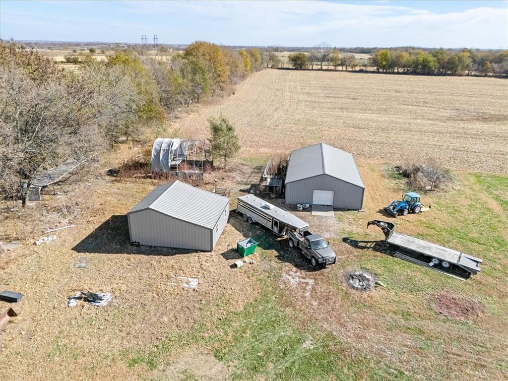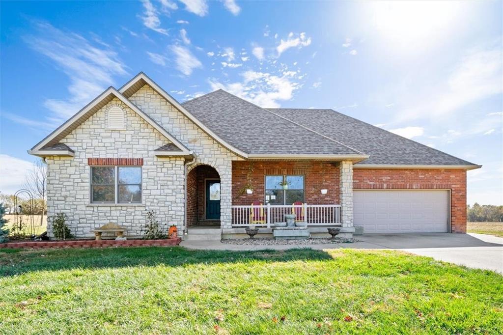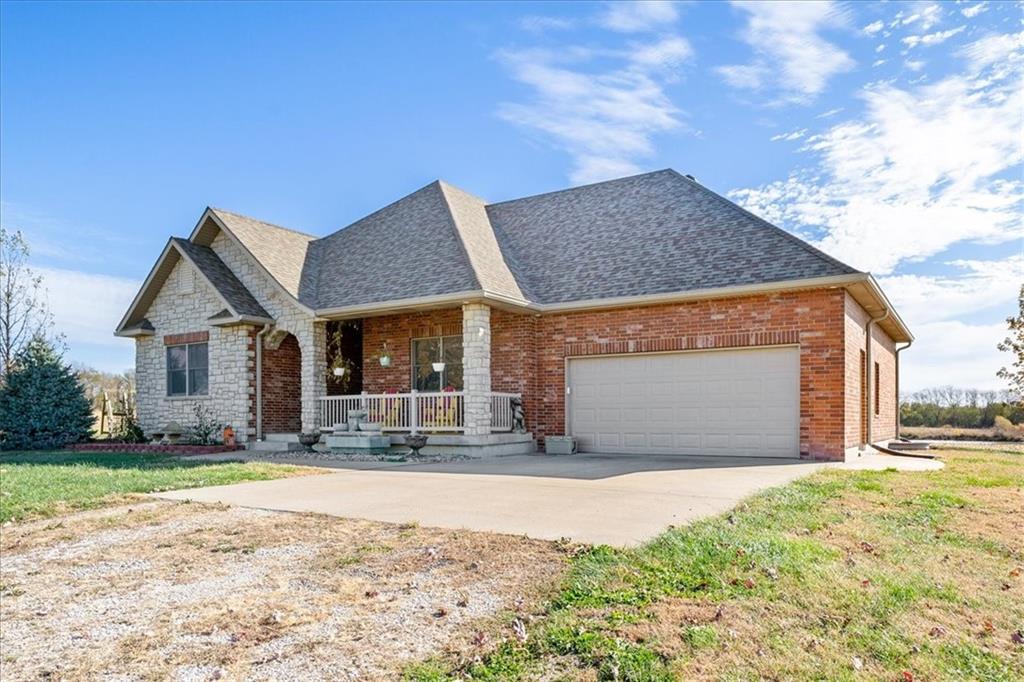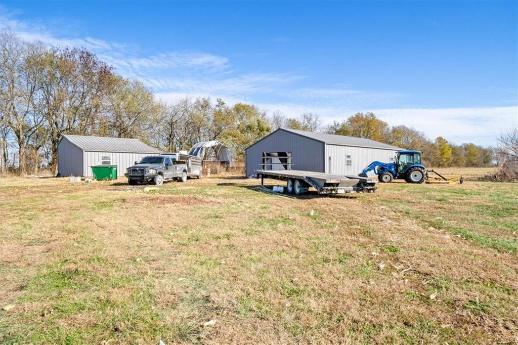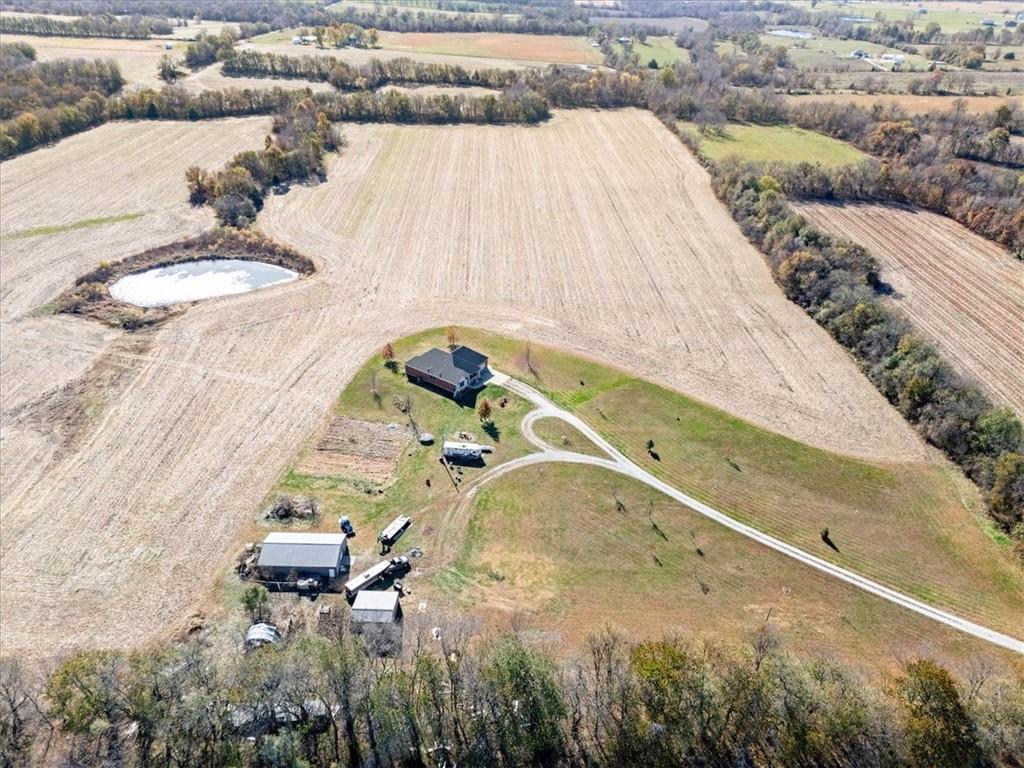 Your own private sanctuary on 20 Acres M/L—just off blacktop, surrounded by nature and peaceful privacy. The only neighbors you’ll see are deer, turkey, squirrels, and an abundance of wildlife. This thoughtfully designed open floor plan showcases excellent construction throughout, featuring a chef’s kitchen with top-of-the-line cabinetry, a massive center island, and generous workspace. Three bedrooms total, including a flexible room ideal for an office, hobby space, or guest suite. Enjoy true main-level living with wide, handicap-accessible doorways and comfort in every detail. 50x 30 and 25x26 Outbuildings ready for storage, hobby or raising livestock. Farm life, Refined.
