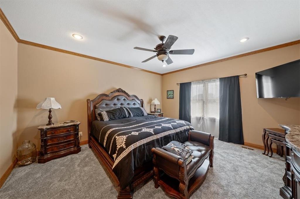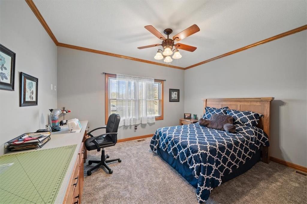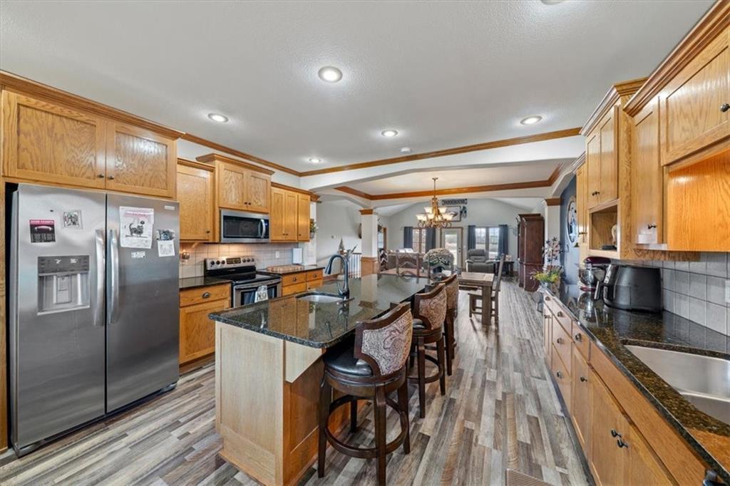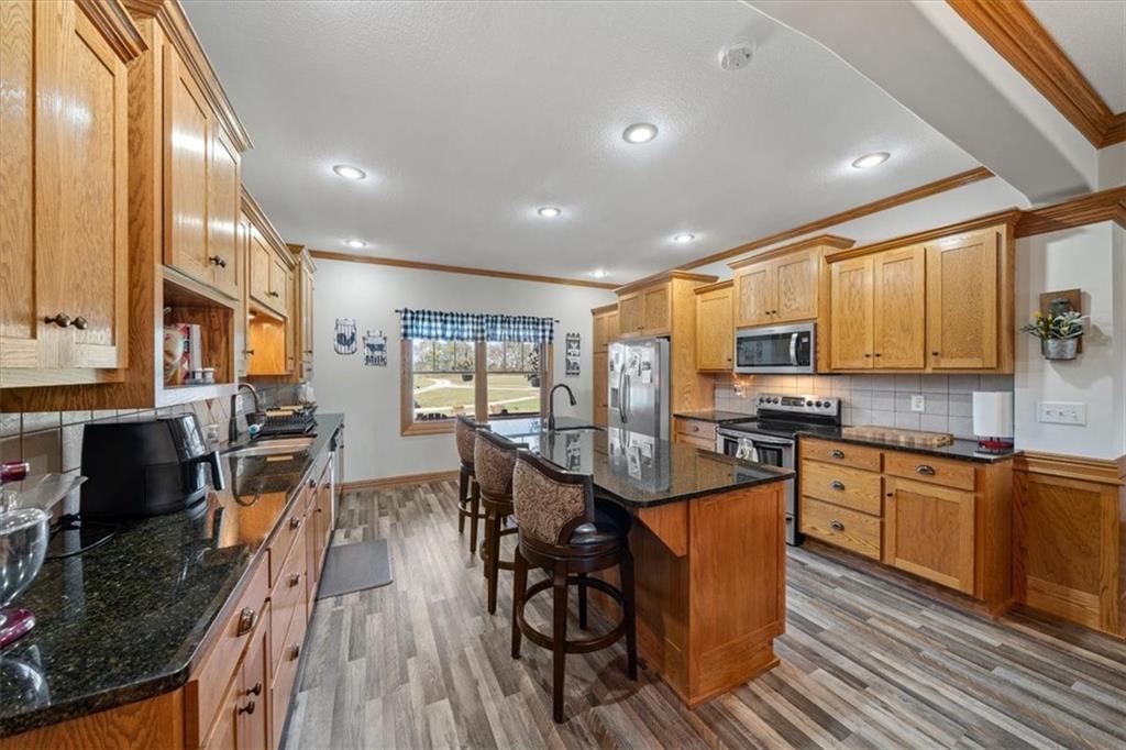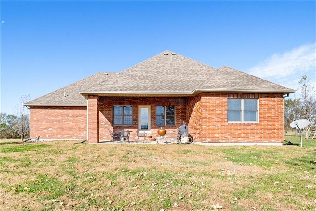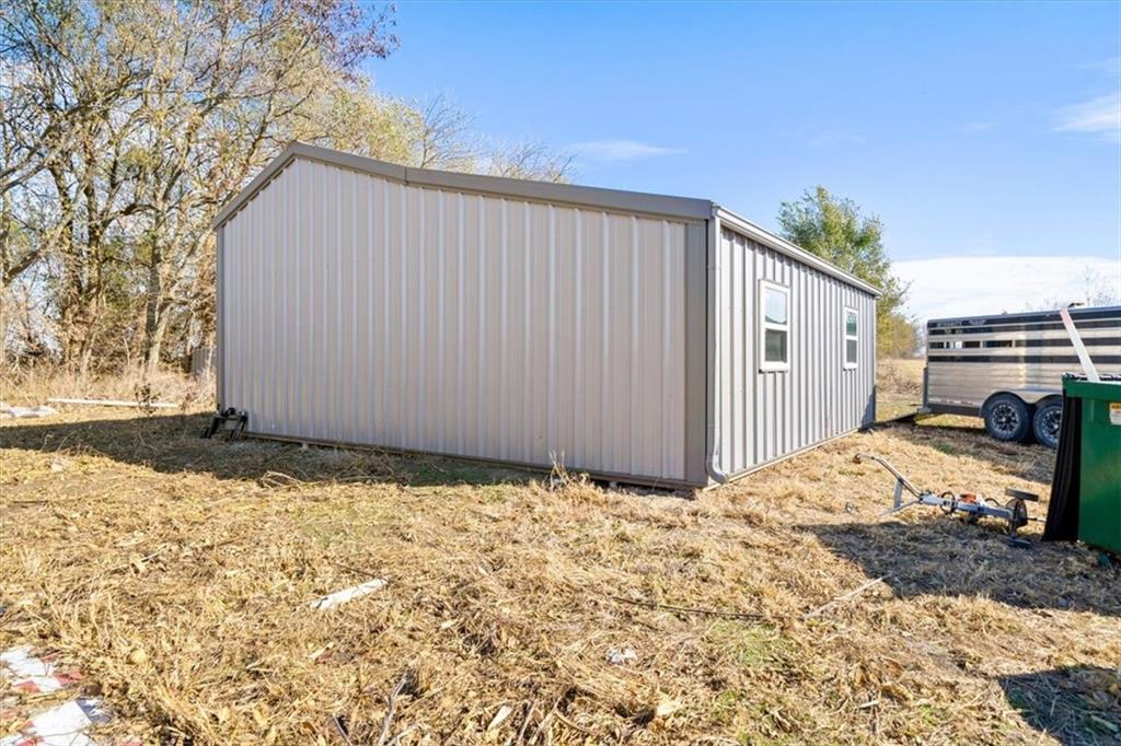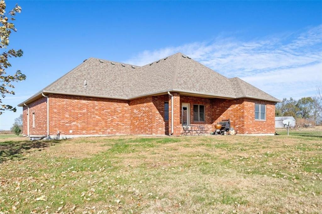 Your own private sanctuary on 20 Acres M/L—just off blacktop, surrounded by nature and peaceful privacy. The only neighbors you’ll see are deer, turkey, squirrels, and an abundance of wildlife. This thoughtfully designed open floor plan showcases excellent construction throughout, featuring a chef’s kitchen with top-of-the-line cabinetry, a massive center island, and generous workspace. Three bedrooms total, including a flexible room ideal for an office, hobby space, or guest suite. Enjoy true main-level living with wide, handicap-accessible doorways and comfort in every detail. 50x 30 and 25x26 Outbuildings ready for storage, hobby or raising livestock. Farm life, Refined.