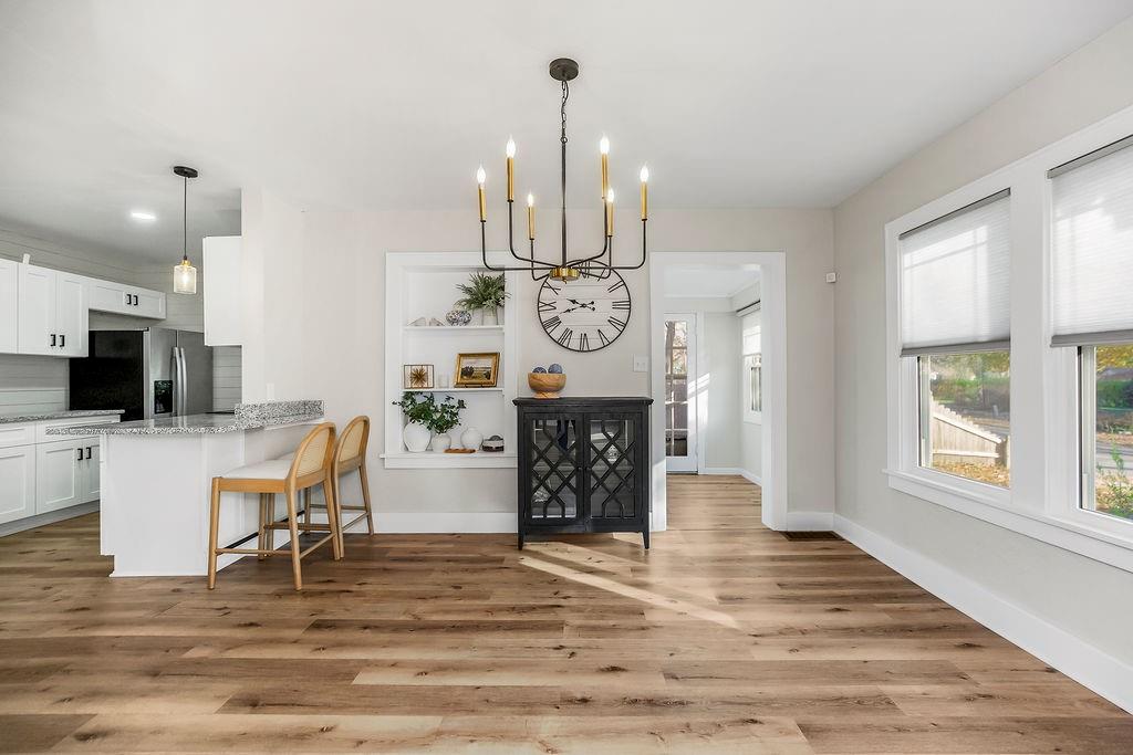 Discover this beautifully updated Dutch Colonial nestled in the heart of Blue Springs’ historic district—just a short stroll to downtown, schools, and parks. Every corner of this home blends classic character with the modern upgrades today’s buyers crave. Step inside to a spacious family room featuring a cozy fireplace and luxury vinyl plank flooring that flows seamlessly across the main level. The formal dining room and eat-in kitchen create effortless entertaining space, complete with a breakfast bar, granite countertops, shiplap accents, stainless steel appliances, and abundant storage. A sun room/mud room offers a built-in boot bench and convenient access to the backyard. A main-level half bath adds extra ease for guests. Head upstairs to find three generous bedrooms, each with roomy closets and upgraded window shades. The primary suite stands out with its oversized closet and private bath showcasing a sliding barn door and tiled shower. The partially finished lower level offers even more versatility, including a non-conforming fourth bedroom with its own half bath and walk-in closet. You’ll also find a dedicated laundry area in the lower level with a sink. Additional upgrades include high-efficiency ProVia windows, an Aprilaire humidifier, and built-ins throughout the home. Thoughtful, stylish fixtures elevate the every level. Outside, enjoy a spacious fenced yard with a remodeled front porch, patio, storage shed, lush landscaping, and a full 6-ft privacy fence. A double-wide driveway ensures ample parking for residents and guests. This historic charmer delivers space, style, and unbeatable walkability—right in the heart of Blue Springs.