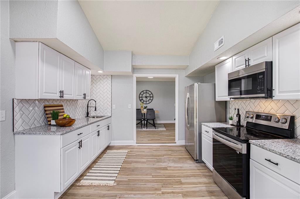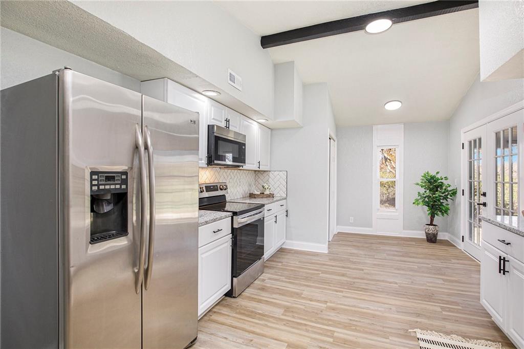 This stunning fully renovated home sits on a quiet dead-end street and feels brand new from top to bottom. Every detail has been thoughtfully updated, including new windows, siding, roof, soffit, fascia, gutters, and a new garage door. Inside, you’ll find all-new trim, doors, flooring, paint, and lighting throughout, creating a bright and modern living space. The kitchen is a showpiece with granite countertops, a stylish tile backsplash, and stainless steel appliances. Both bathrooms have been completely remodeled with fresh, modern finishes, and the open layout makes the home perfect for both relaxing and entertaining. Step outside to enjoy a beautiful covered back patio overlooking the spacious yard—ideal for outdoor dining or quiet evenings. With a brand-new AC system and upgrades in every direction, this home offers the comfort and peace of mind of a new build in an established neighborhood. Move right in and enjoy the best of modern living without lifting a finger.